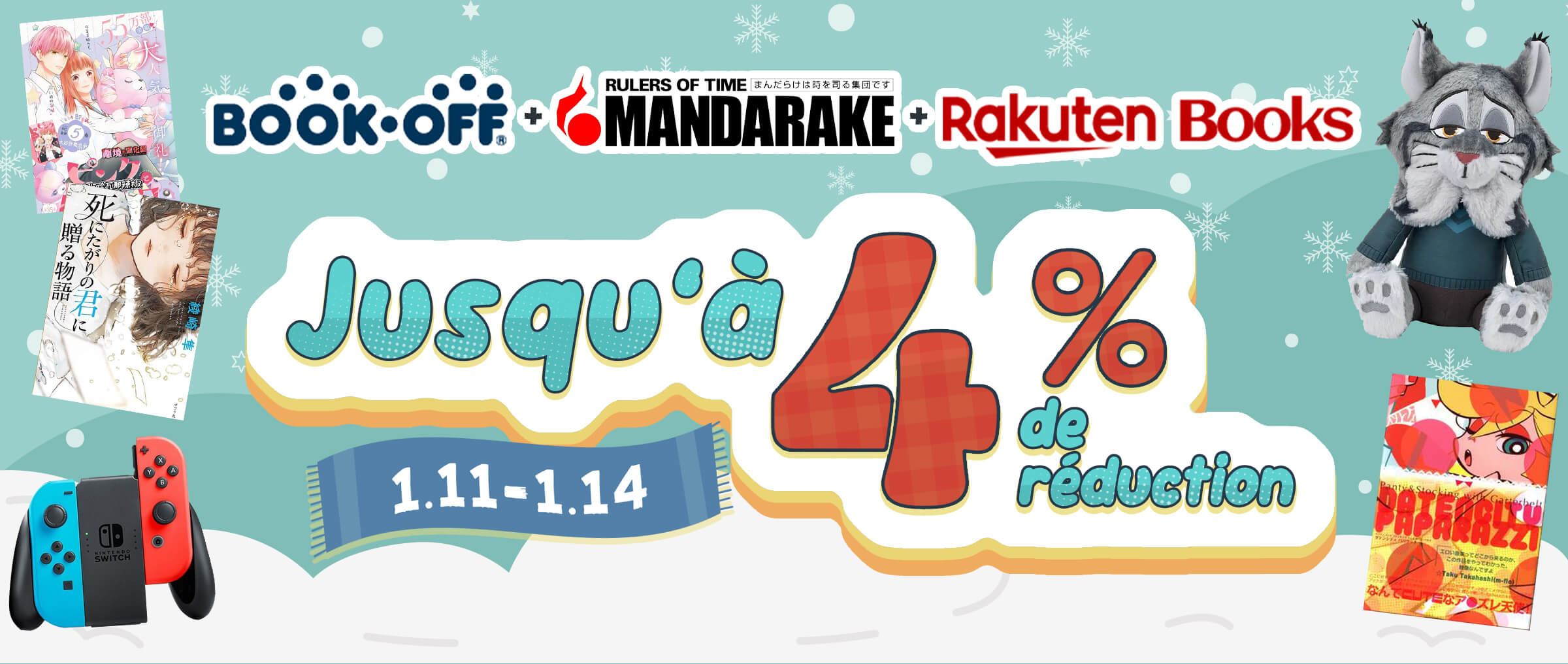 2.【4% Off Coupon】:Pour toute commande supérieure à 5,000 JPY chez BOOK-OFF, Mandarake et Rakuten Books, bénéficiez de 4% de remise.