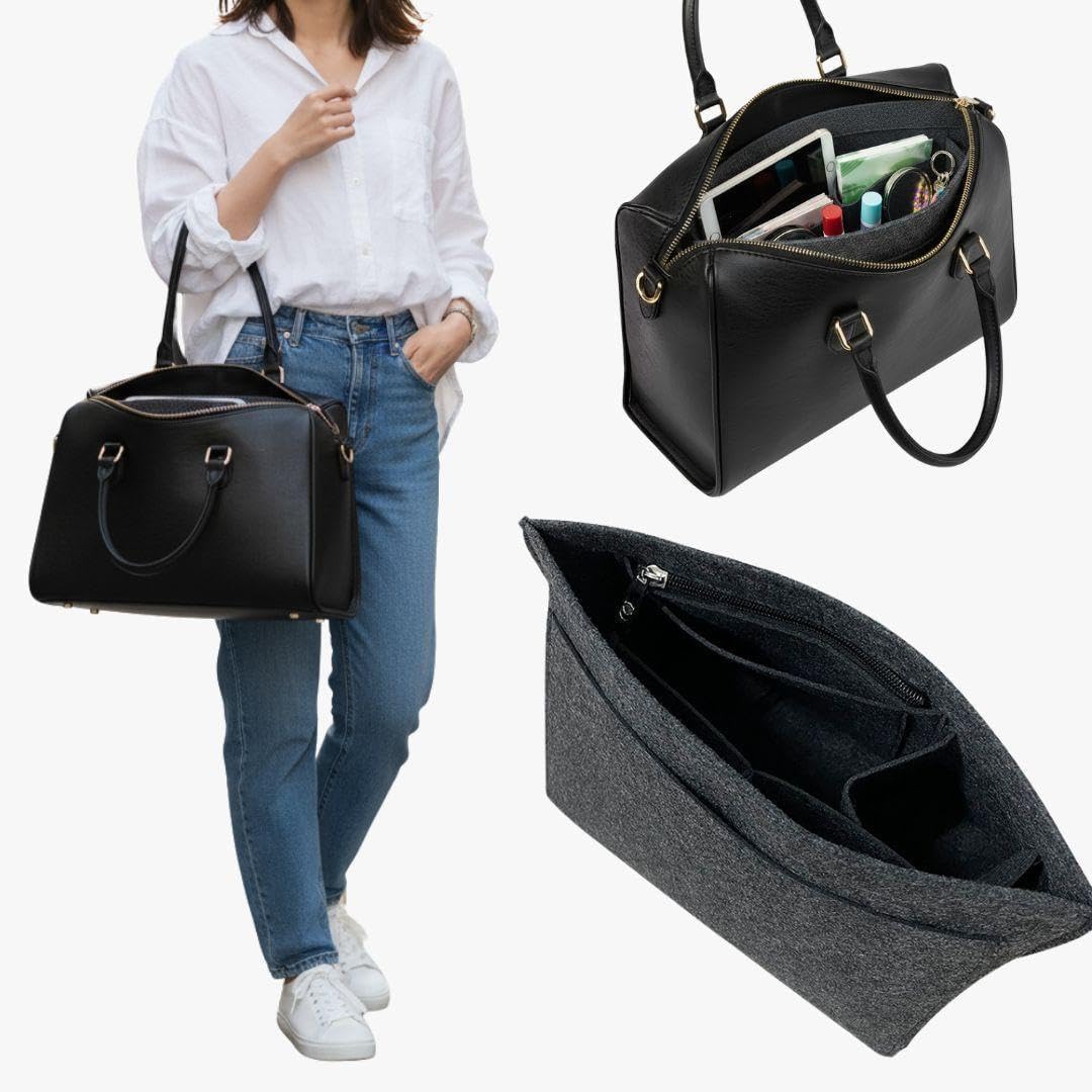 バッグインバッグ グレー Lサイズ 小物入れ フェルト インナーバッグ 自立