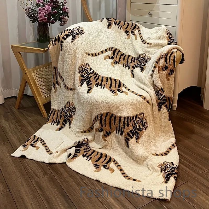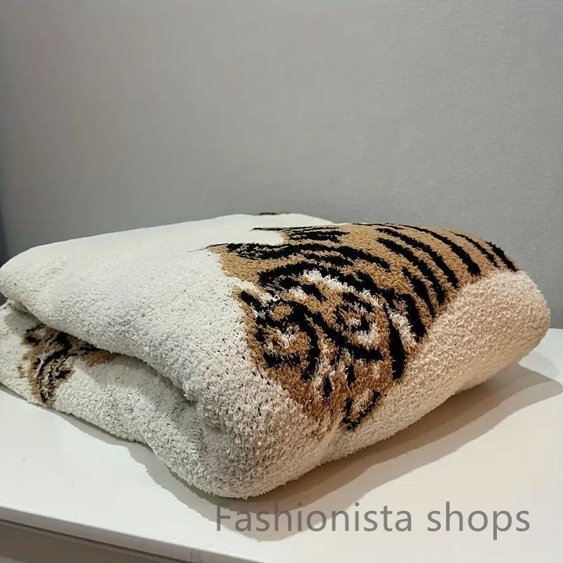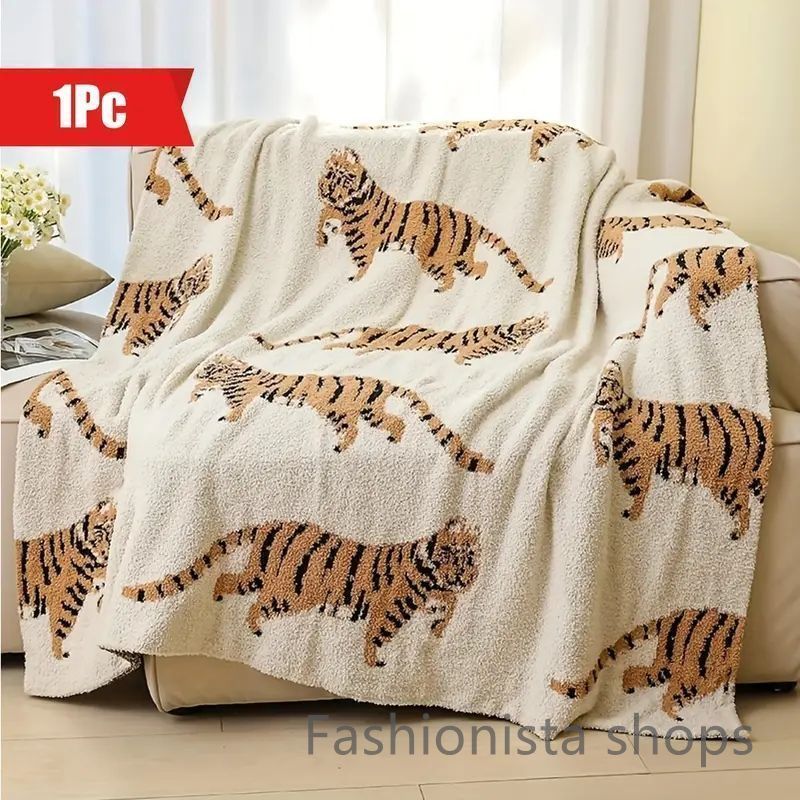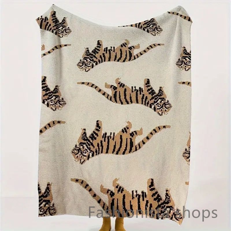 1pc北欧のトラ柄のニットブランケット、エアコンブランケット、暖かく快適なソフトナップブランケット、ソファ、オフィス、ベッド、キャンプ、旅行用のスローブランケット