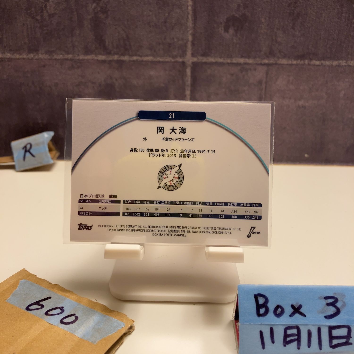 2023 Topps Finest 岡大海 Hiromi Oka 052/150 千葉ロッテマリーンズ Blue Refractor カード