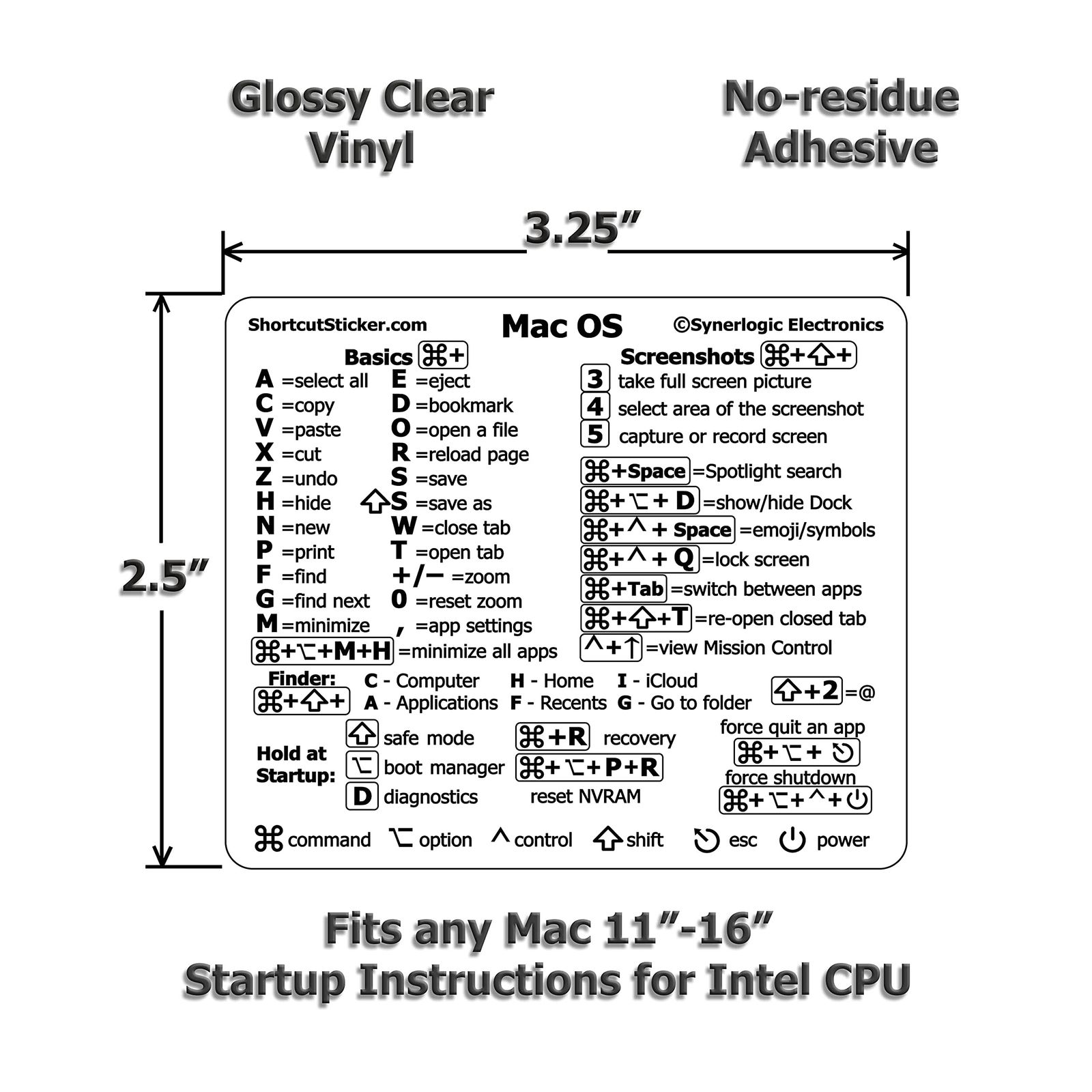 SYNERLOGIC (インテル用) Mac OS (モントレー/ビッグサー/カタリナ/モハーベなど) キーボードショートカット 透明ビニールステッカー 跡が残らない接着剤 MacBook Air/Pro/iMac/Mini対応 [クリア] [1]