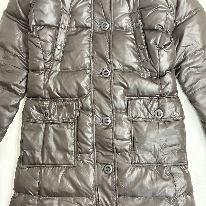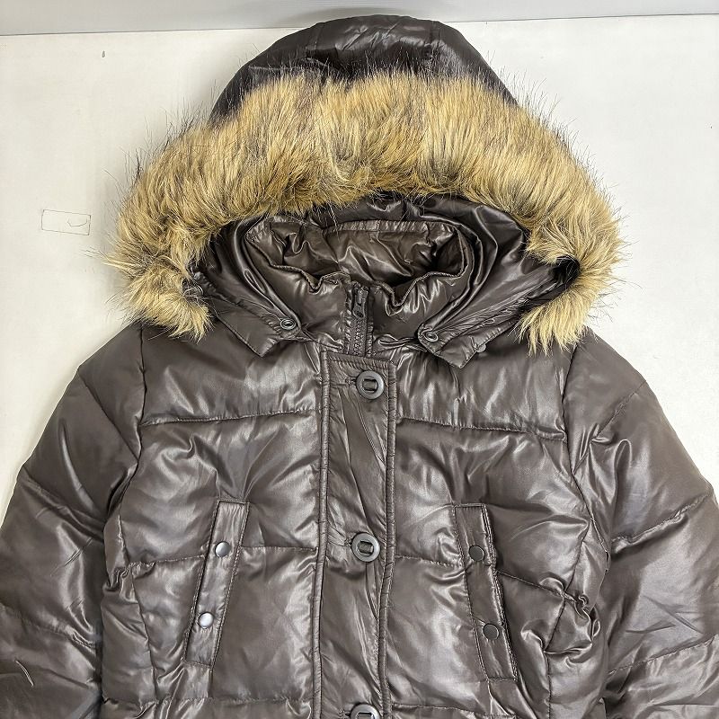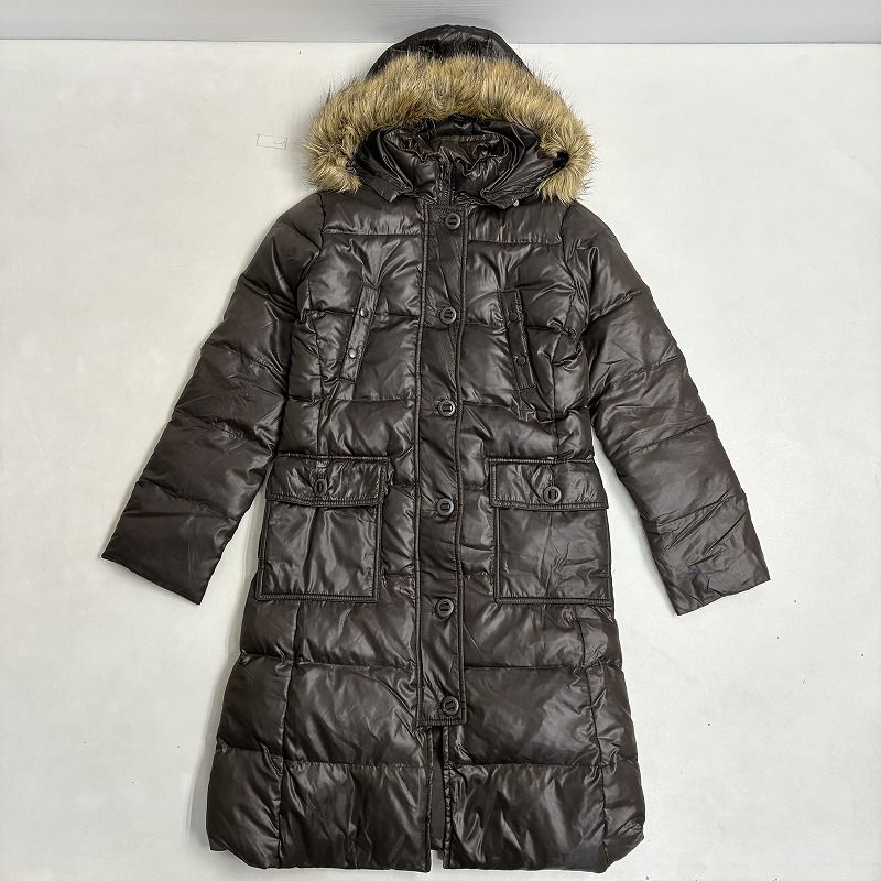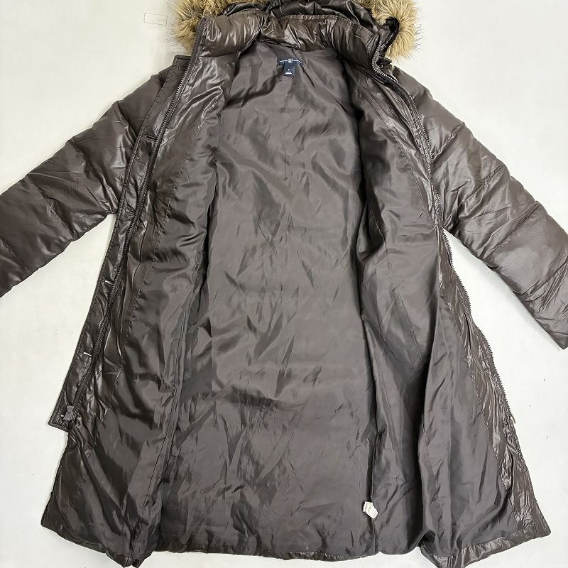 ◆ GAP ギャップ ダウンジャケット 00s コート ロング丈 アウター フェザー フード取り外し可 ダブルジップ 古着 ブラウン サイズS レディース 0.86kg