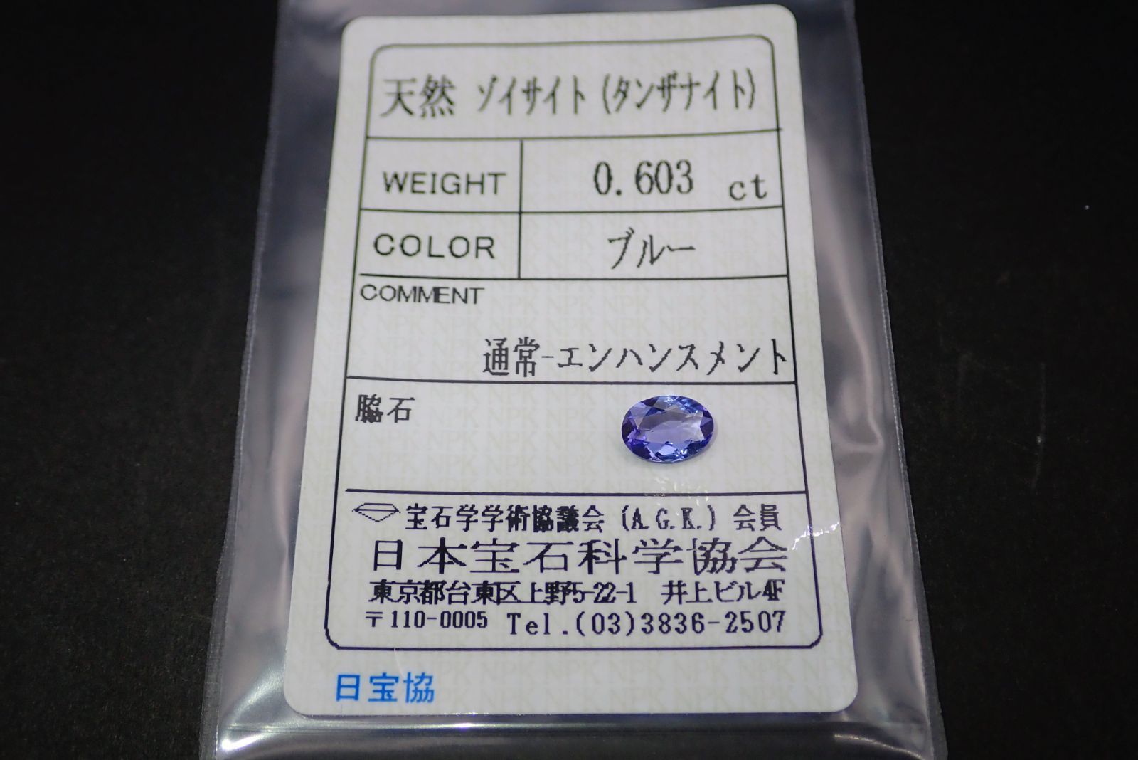 天然ゾイサイト(タンザナイト) ルース 0.603ct 約5mm×6mm ソーティング付き!