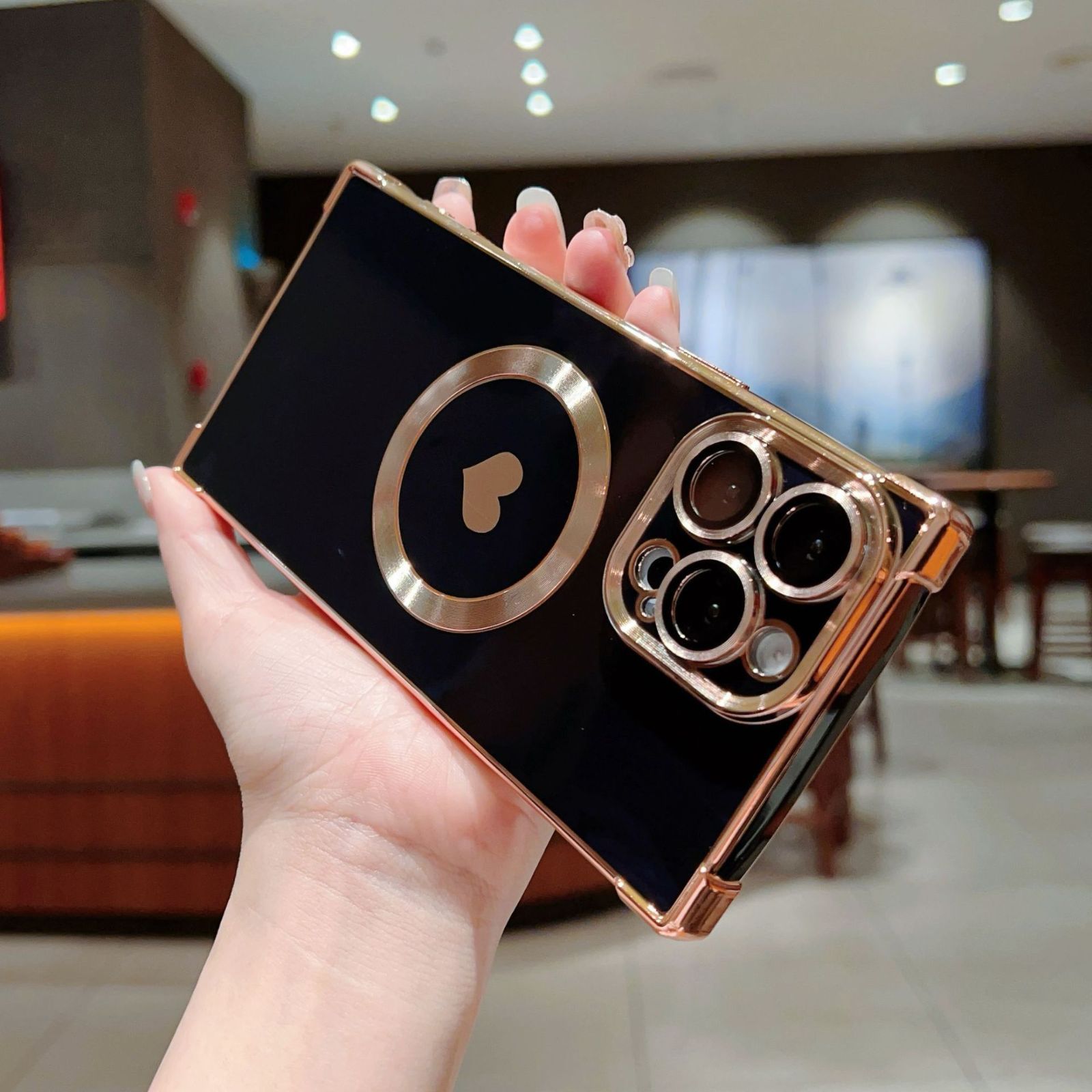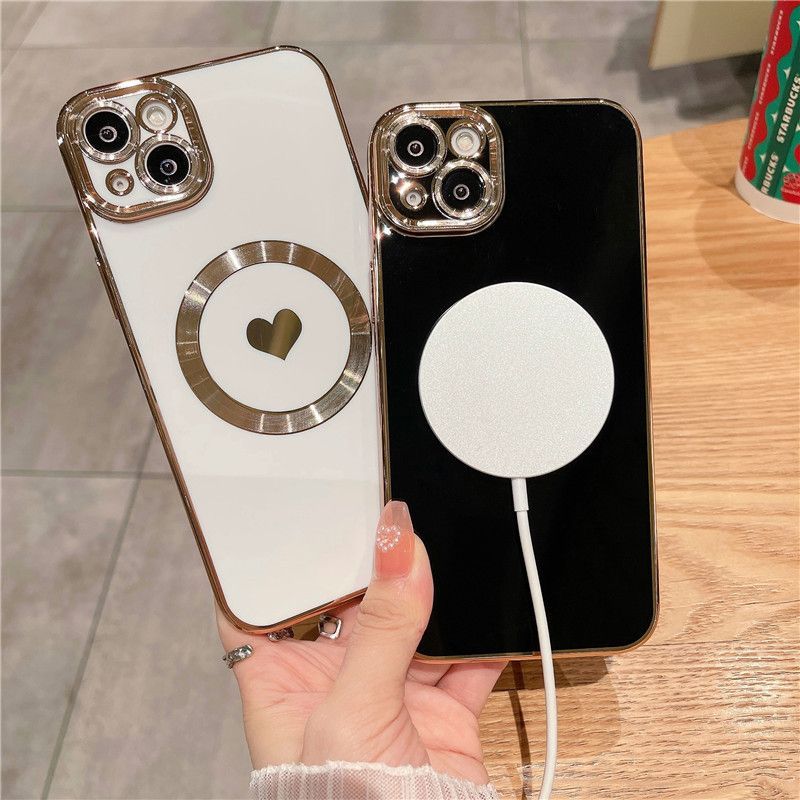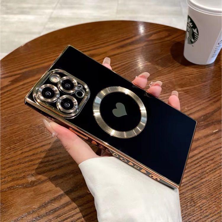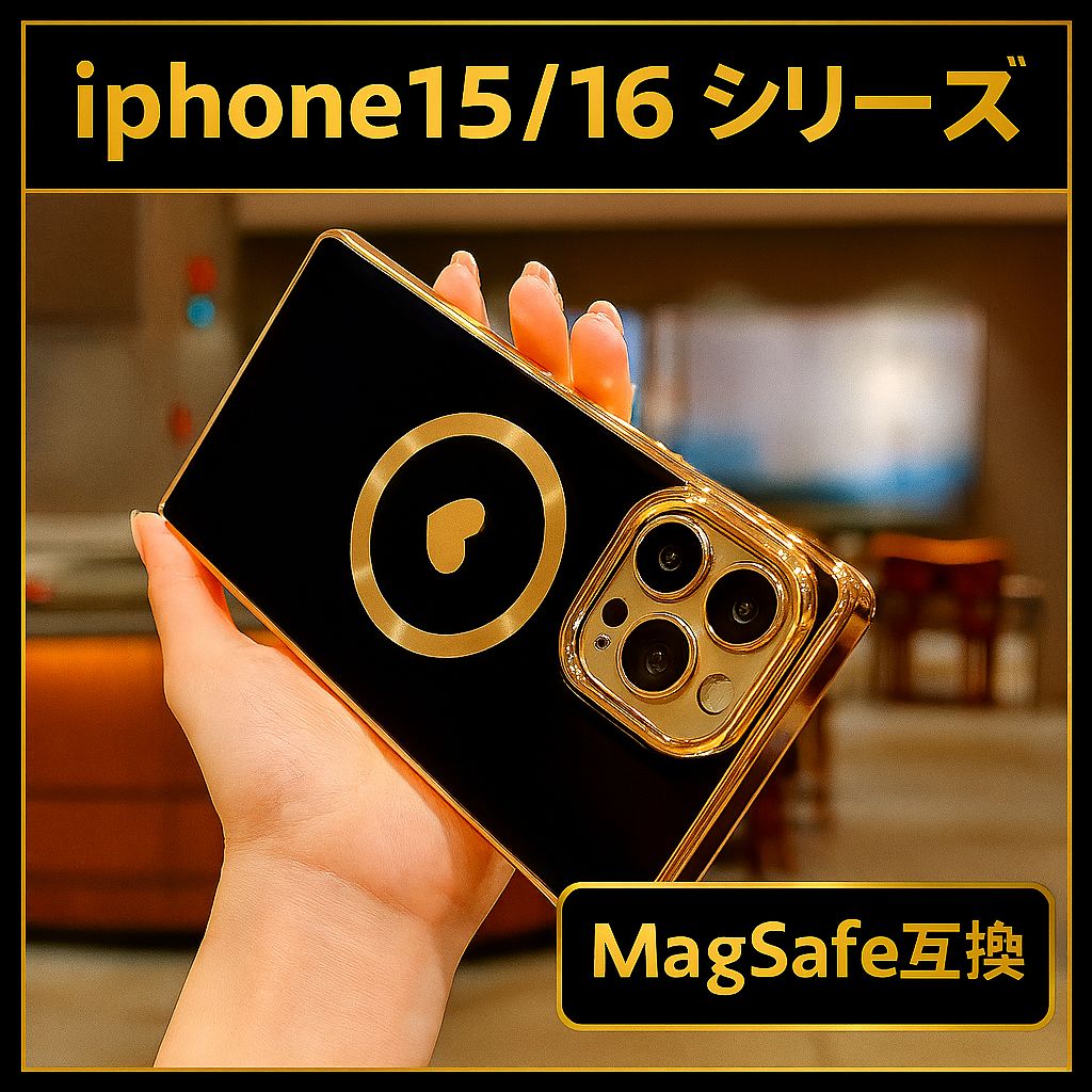 ∴▲ iphone15/16 シリーズ ▲ マグセーフ magsafe 黒 ハート スクエア 高級感 ケース カバー 充電 ワイヤレス iphone15 iphone16 pro promax plus
