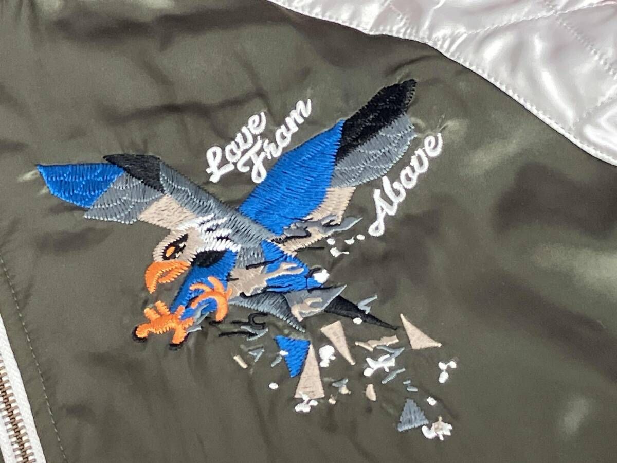 55DSL/スカジャン/モスグリーン/鳥/RN93243/Mサイズ