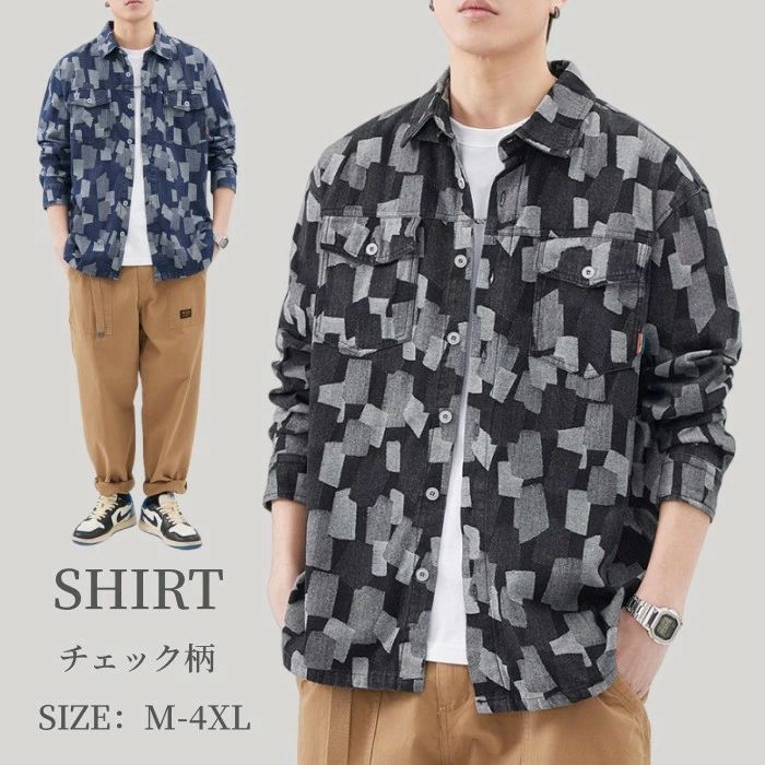 デニムシャツ メンズシャツ シャツジャケット 長袖シャツ チェック柄 Gジャン カジュアル ライトアウター お洒落 トップス レギュラーシャ