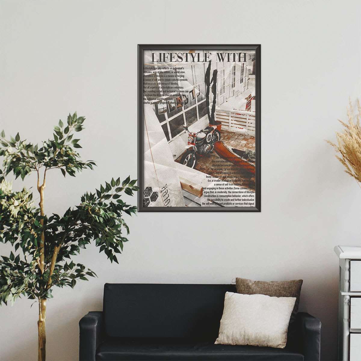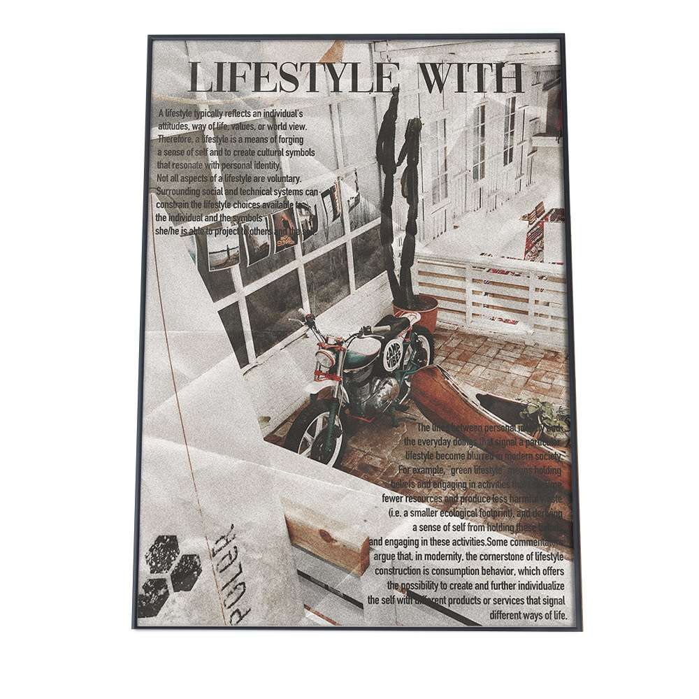 【B1サイズ(約73x103cm)】【fg-poster-19】バイク ポスター フレーム付き 男前 インテリア アート モダン お洒落 波 サーフ 海 白 カリフォルニア カフェ 縦