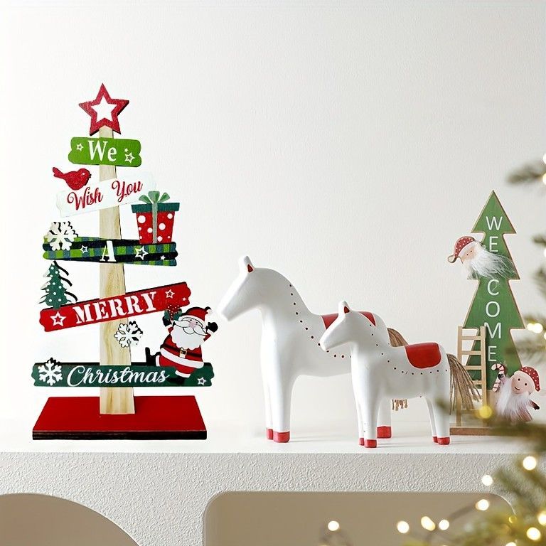 【クリスマス飾り】木製ミニクリスマスツリー オーナメント サンタ プレゼント デコレーション 電源不要 卓上 玄関 店舗 イベント パーティー【Bタイプサンタ】
