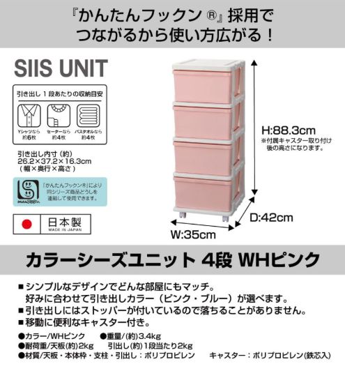 JEJアステージ カラーシーズユニット4段 WHピンク▲
