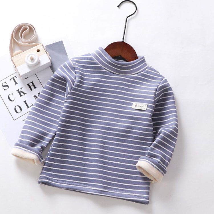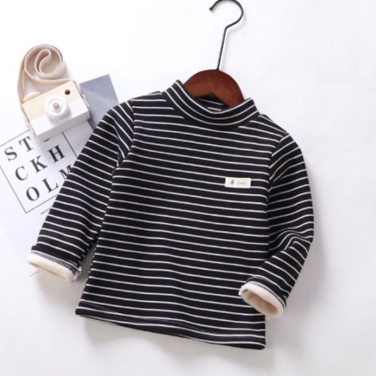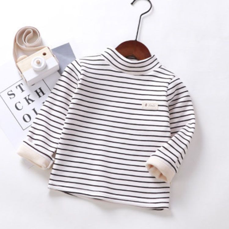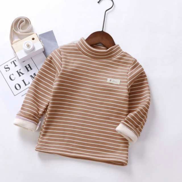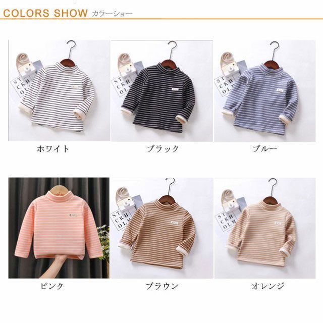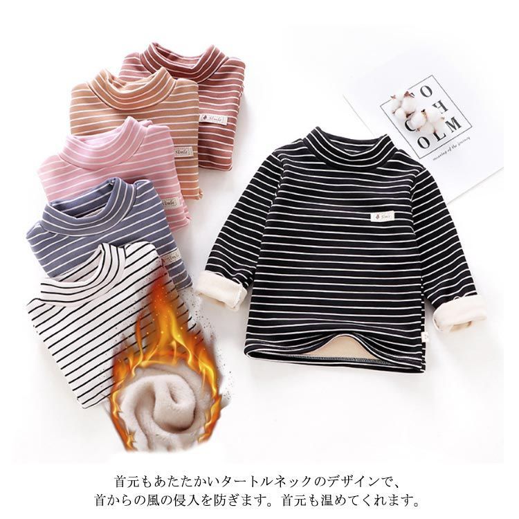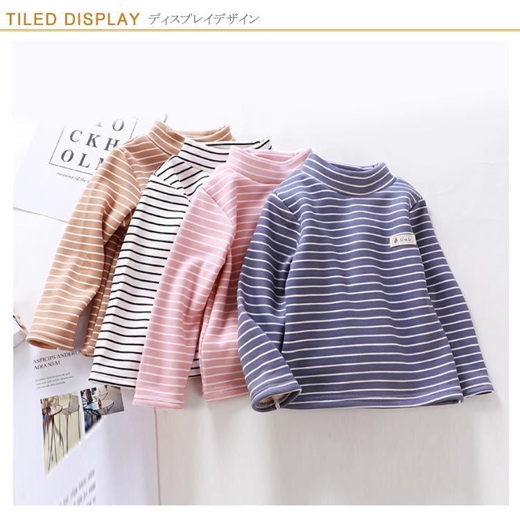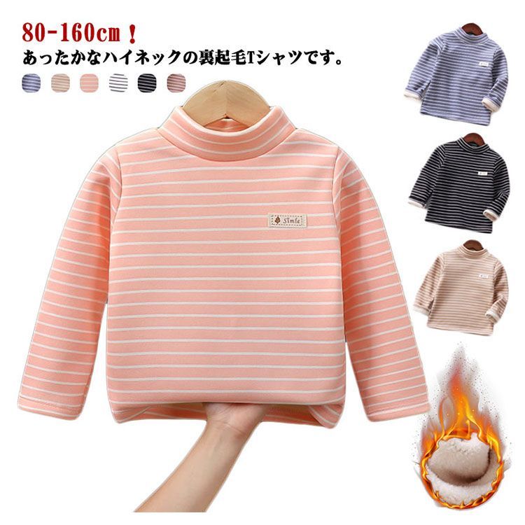 ハイネック カットソー キッズ用 ベビー用 裏起毛 秋冬 インナー 肌着 男の子 女の子 子供服 長袖 ロンT Tシャツ タートルネック インナーTシャツ ボーダー トップス 保温 あったか 厚手 キ#chi4271