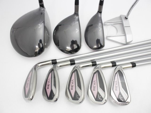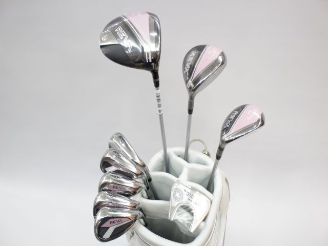 【中古】 レディース キャロウェイ REVA 2024 9本セット 専用キャディバッグ付 ピンク オリジナルカーボン(L) 未使用品! [6257]