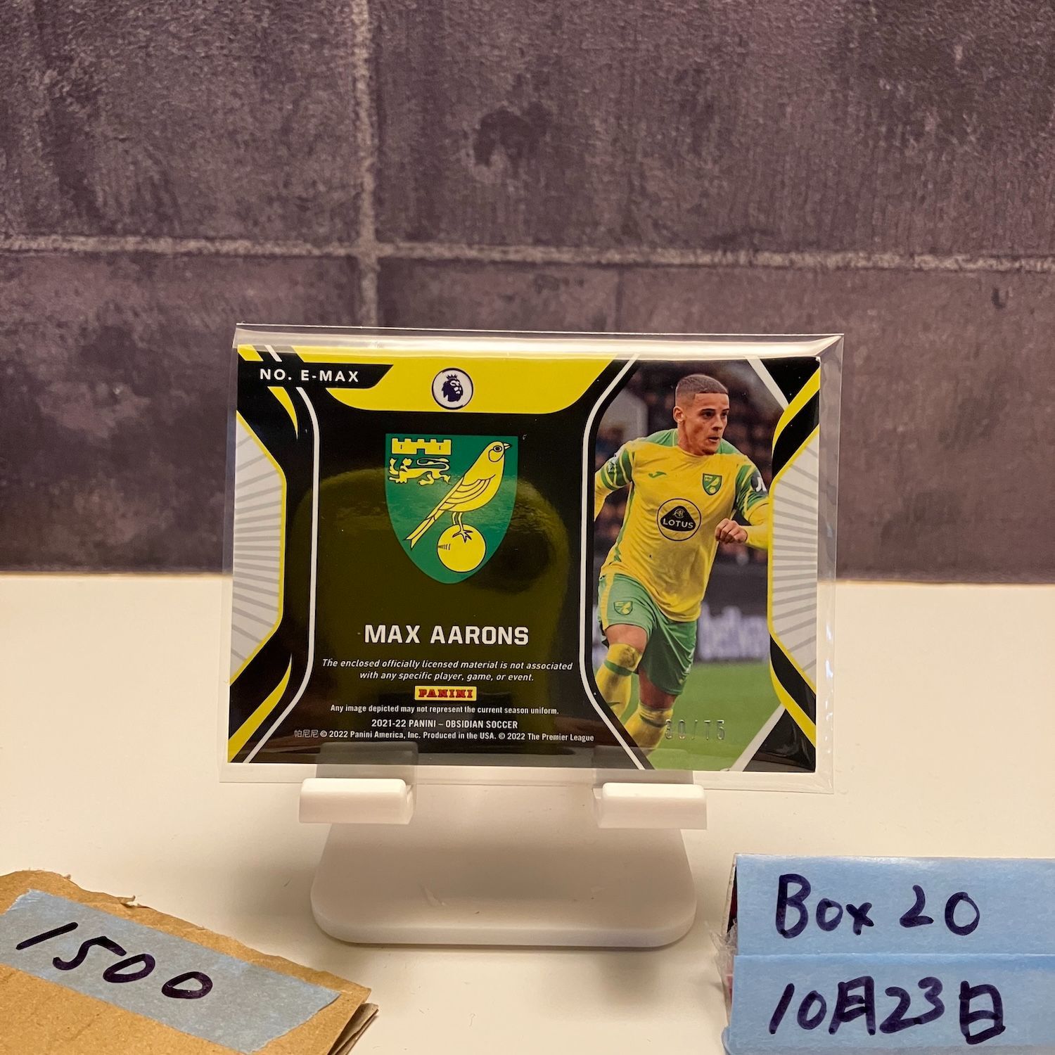 2021-22 Panini Obsidian Max Aarons 30/75 Norwich City Eruption ジャージ カード