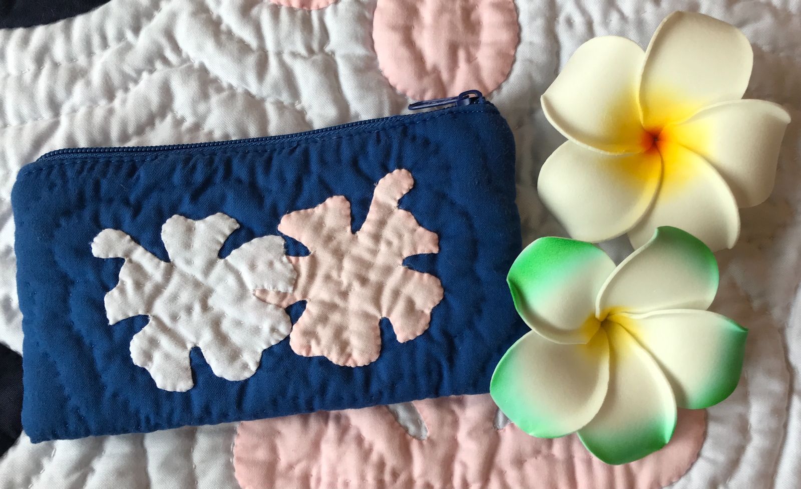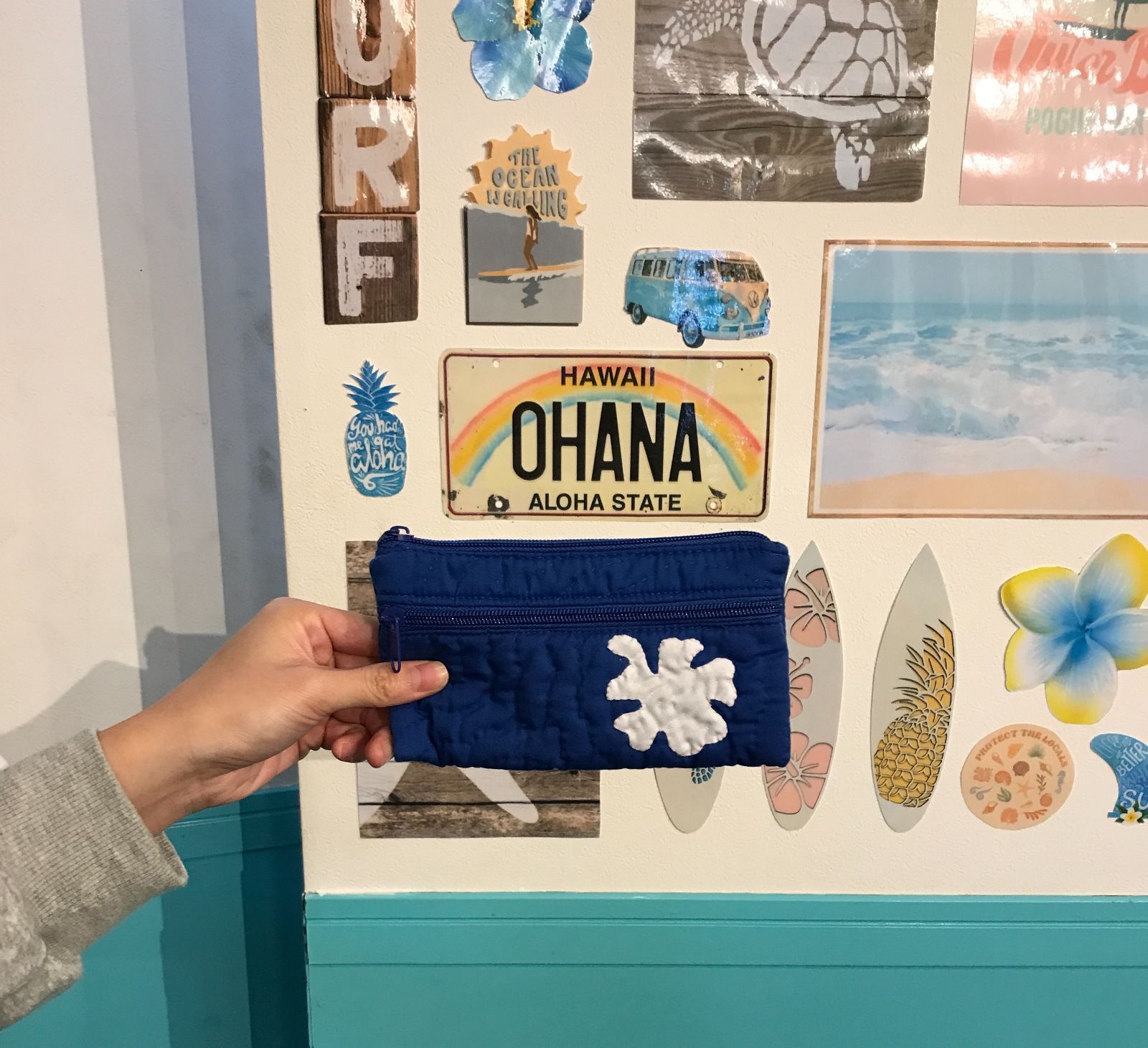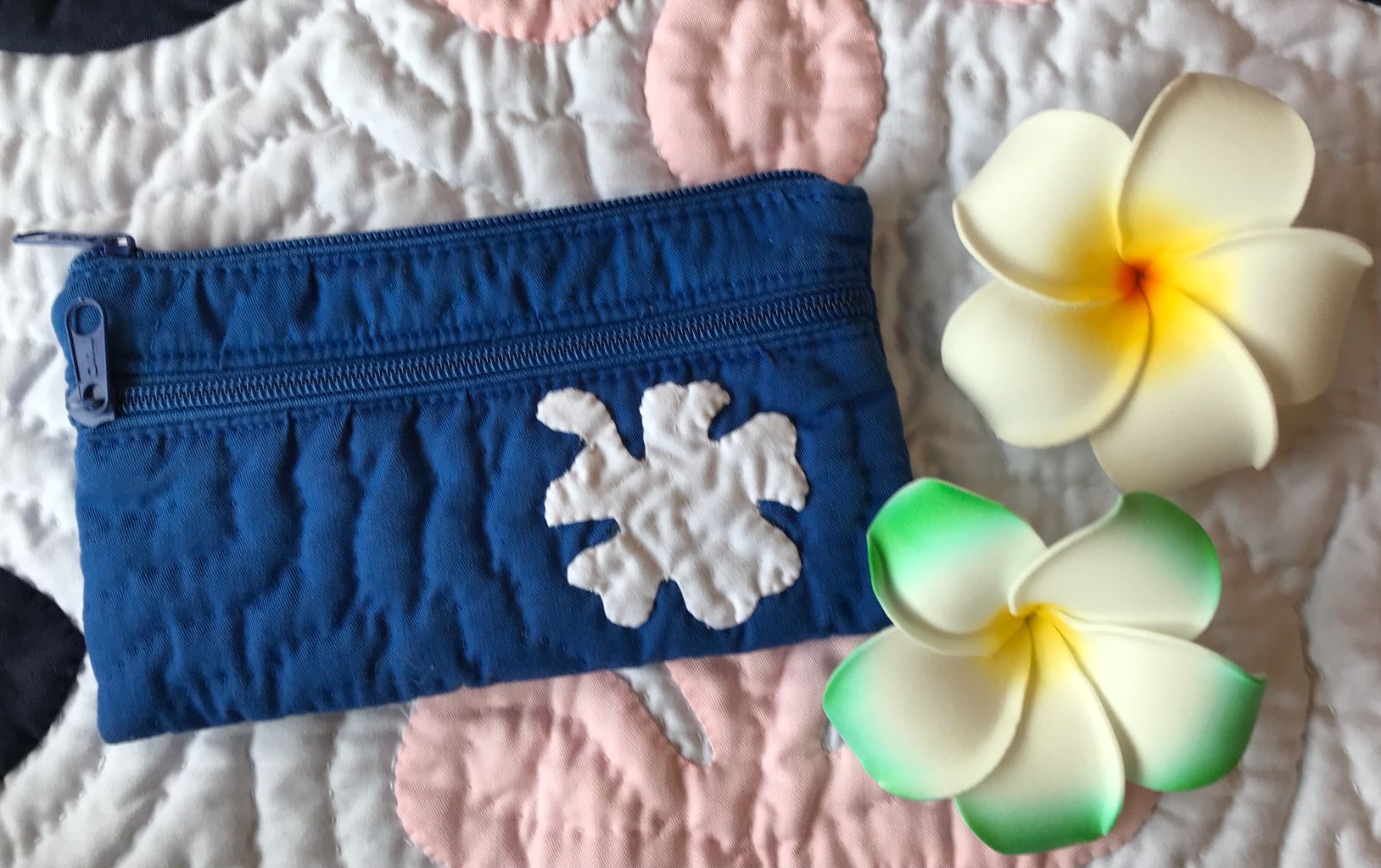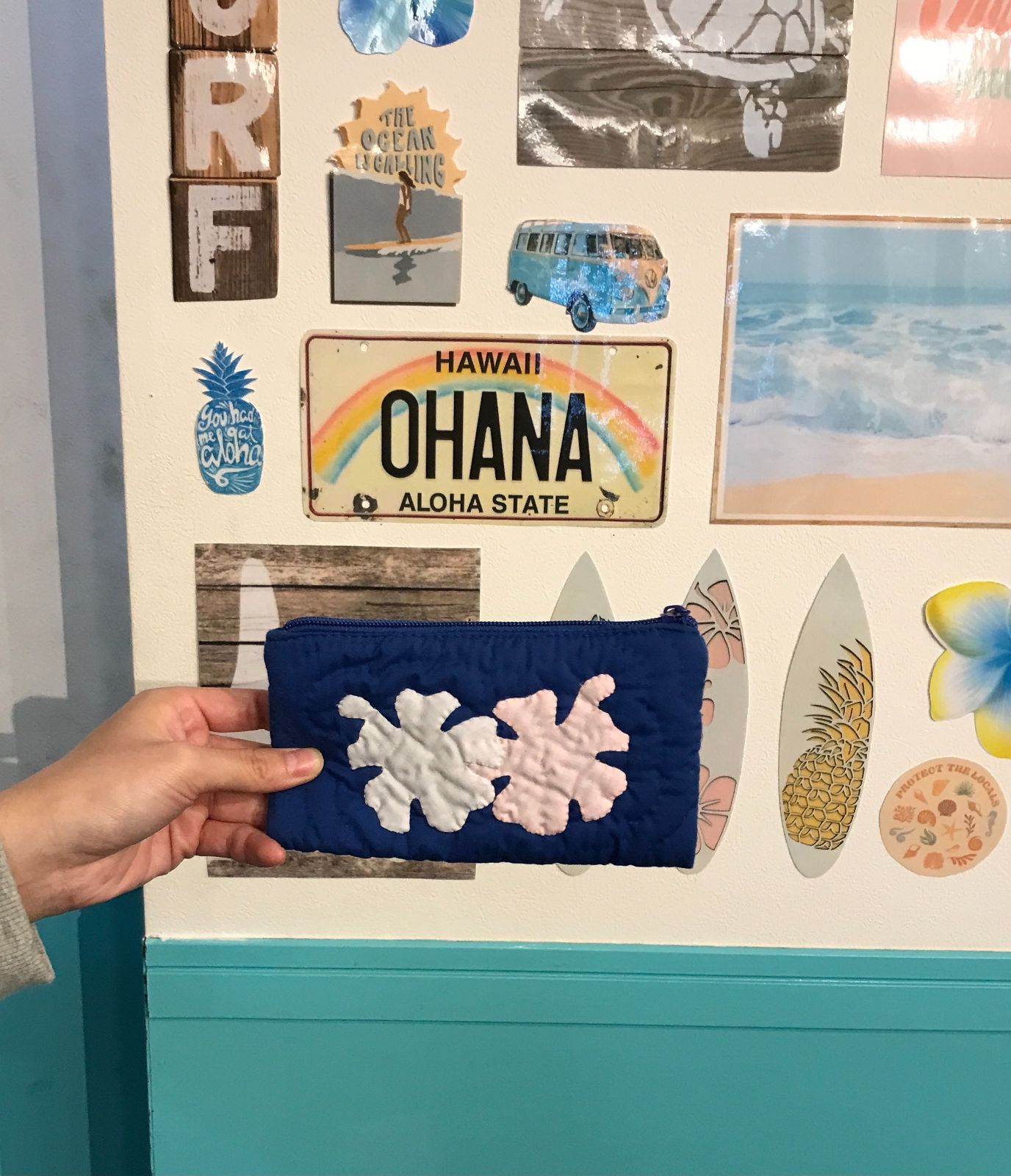 <正規品>カードポーチ♡ハイビスカス♡ロイヤルブルー♡ハワイアンキルト