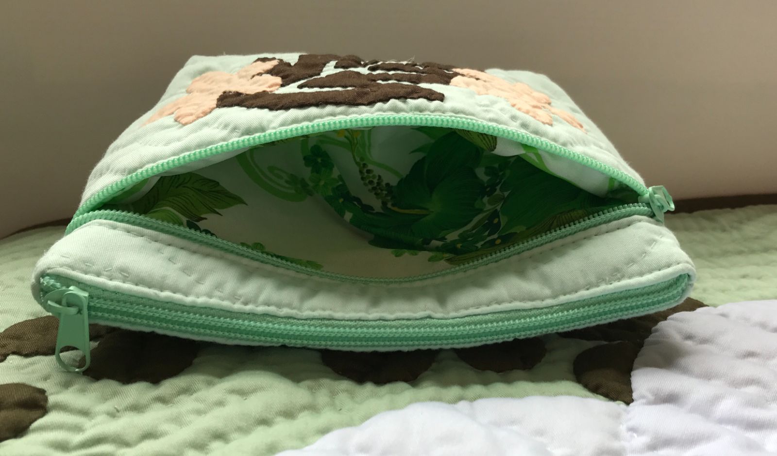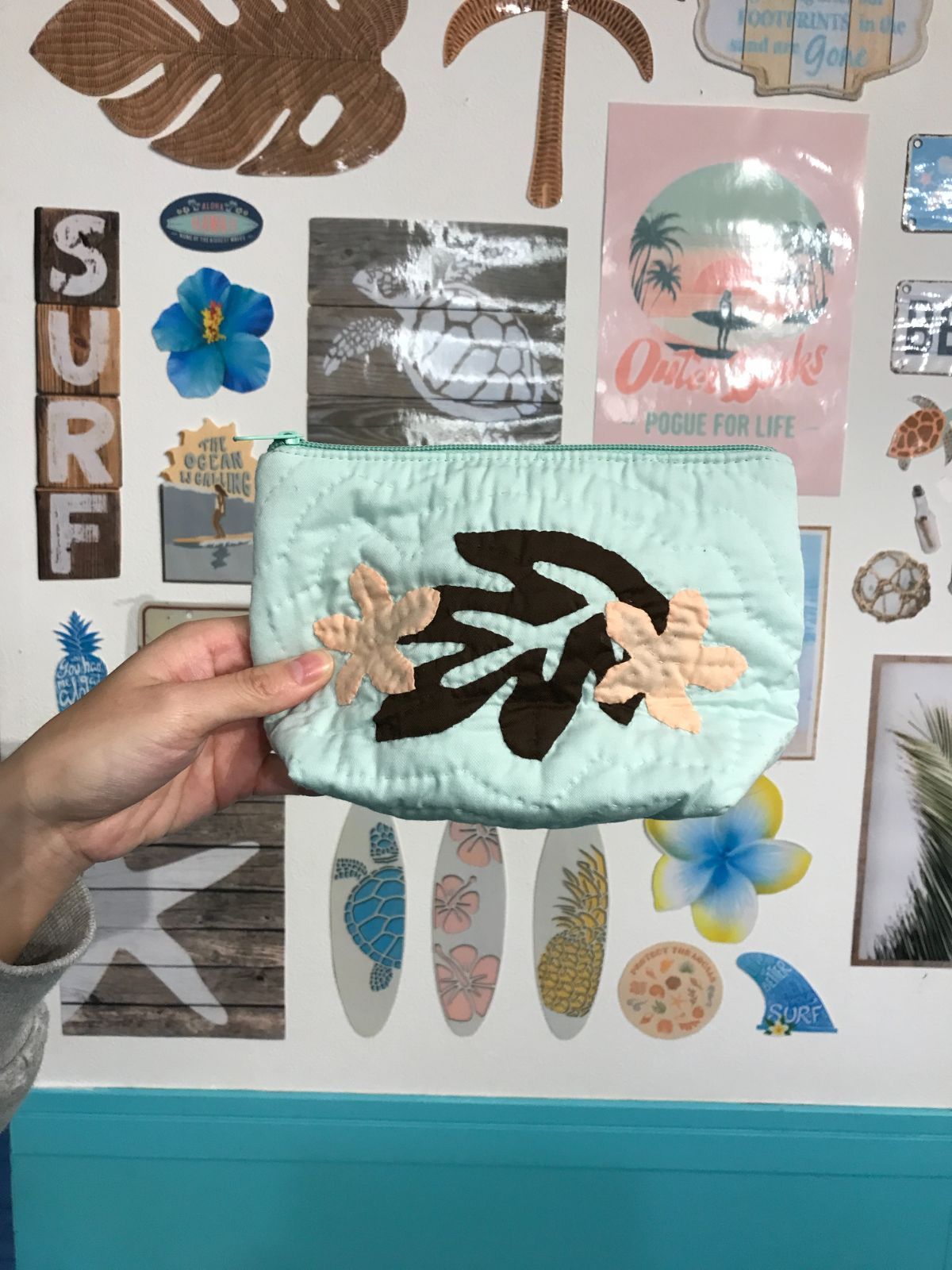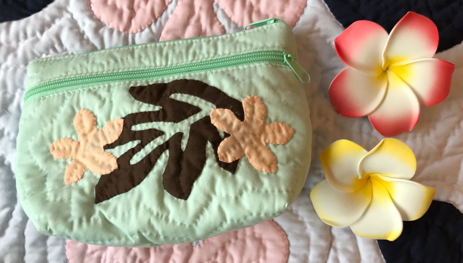 <正規品>レスポーチ♡モンステラ&プルメリア♡ミントブルー♡ハワイアンキルト