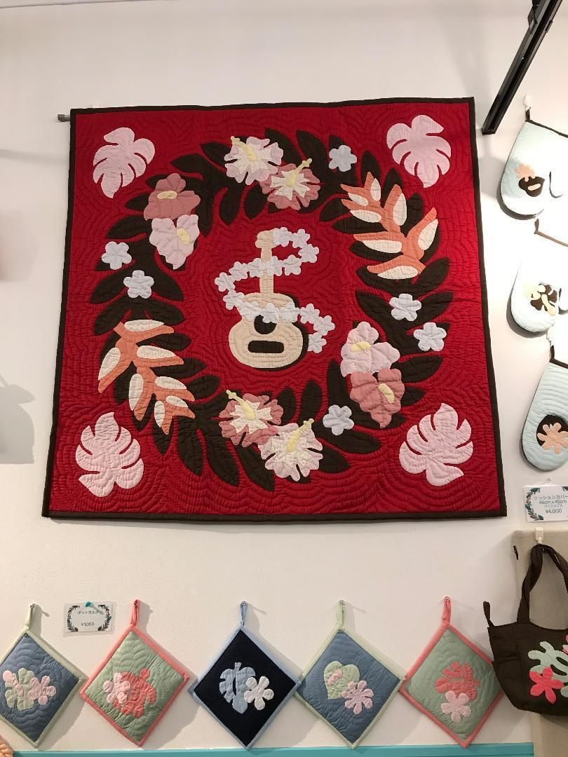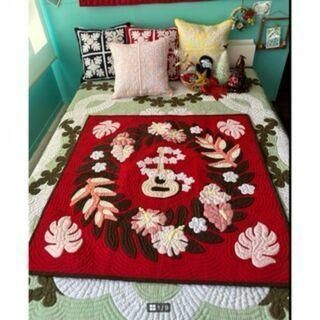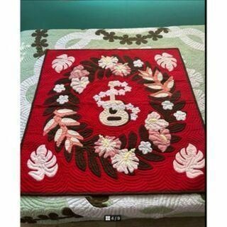 [正規品]タペストリー♡ウクレレ♡105x105♡赤♡ハワイアンキルト