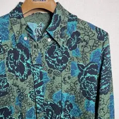 Amina コットンジャケット 花柄 異素材 ドッキング カーキ レディース
