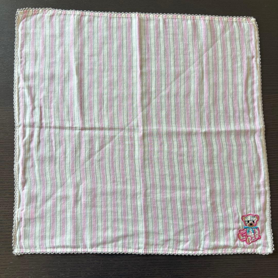 INTERMODE×リバティ ストライプ柄 クマ刺繍 ハンカチ