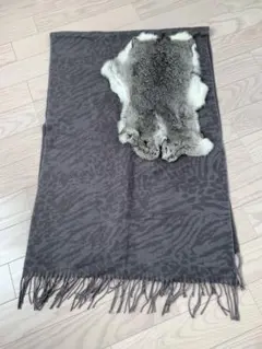 バ*ん様 #15.ラビットグレー ファーマフラー ATTENTIONタグ付き