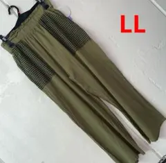 LLサイズ綿100%ポケット格子柄ゼミワイドパンツ