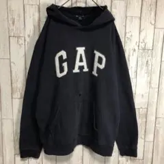 US古着 GAP ダメージ パーカー 紺 ネイビー L PD56