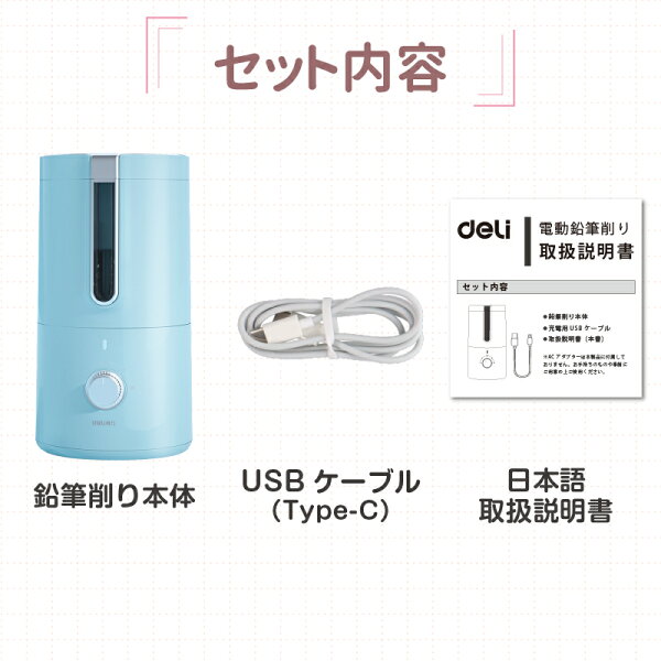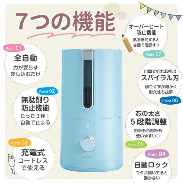 【クーポンで2,980円~】 鉛筆削り 電動 えんぴつ削り 充電式 子供用 入学祝い おしゃれ 色鉛筆 太さ調節 充電式鉛筆削り えんぴつ削り コンパクト 替え刃 卓上クリーナー deli 【日本語説明書同梱】 ギフト対応可 ★レビューで特典を選べる