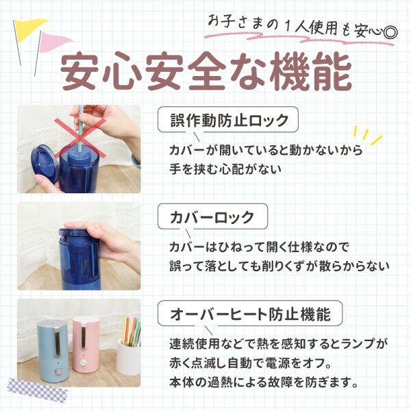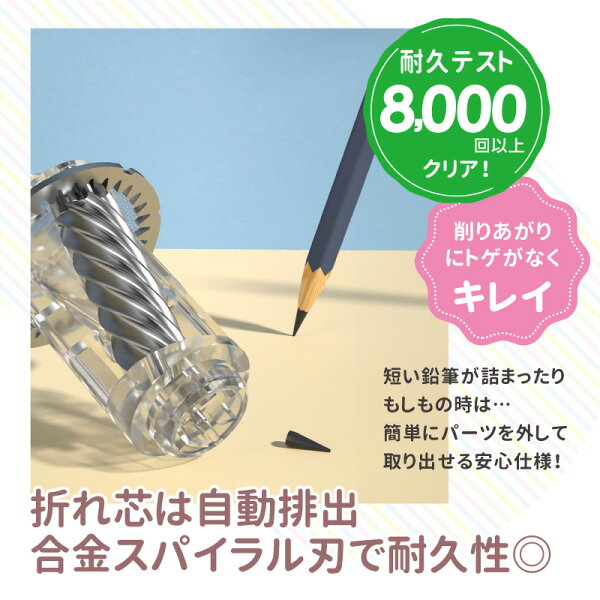 ・たった3秒で削れて勉強効率もアップし、削り終わったら自動で鉛筆が出てくるので無駄削りも防止できます。