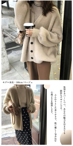 【ポイント最大43倍+最大60%OFF】カーディガン ニット Vネック ジャケット レディース シャギーニット トップス ニットコート フェザーカーディガン ニットカーデ ゆるニット 体型カバー プルオーバー ふわふわ あったか 防寒 春 秋 冬
