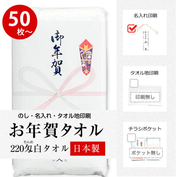 お年賀タオル 粗品タオル (挨拶用タオル) お年賀 タオル 国産 220匁 のし名入れ付きタオル 50枚以上(端数注文OK) 袋入 挨拶 タオル 挨拶回り 引っ越し ご挨拶タオル 粗品 販促 熨斗付き 名入れ ご挨拶用 タオル 手芸の山久