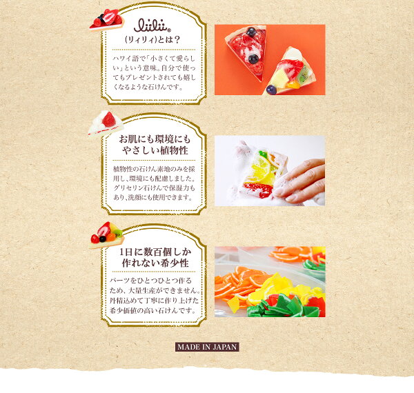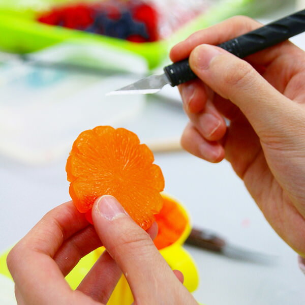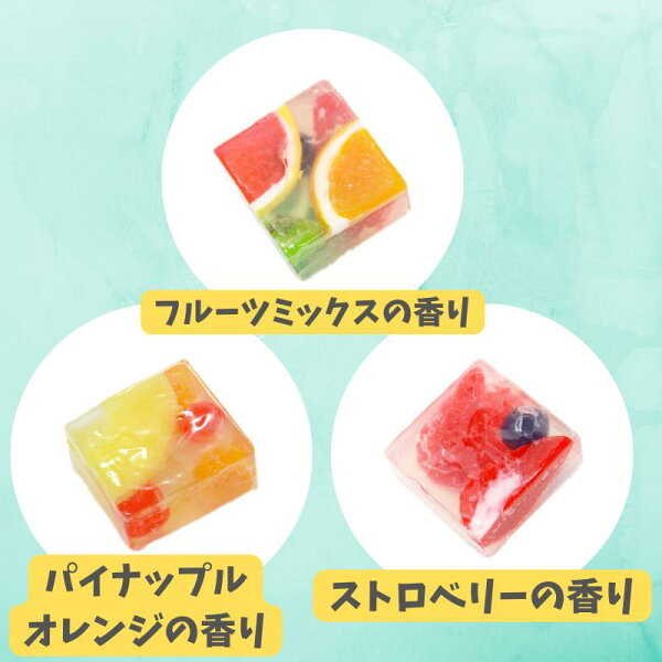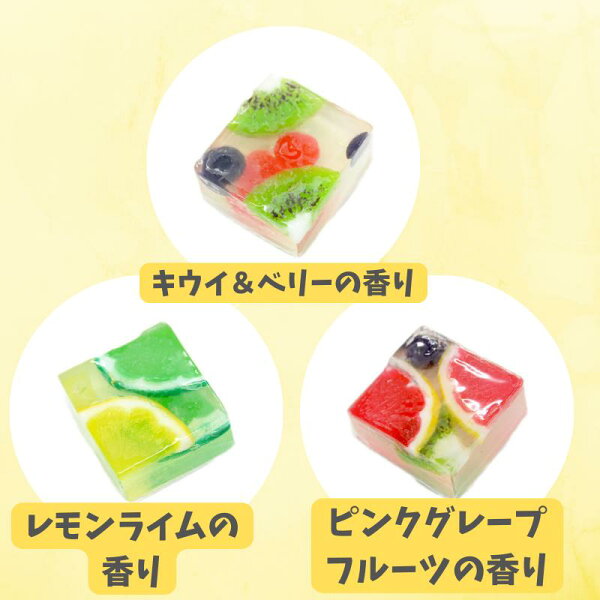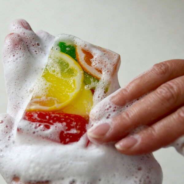 お肌にやさしいグリセリン石けんです。中のフルーツも全て石けんでできており、