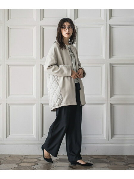 ダンボール*キルティングロングノーカラーブルゾン MAYSON GREY メイソングレイ ジャケット・アウター テーラードジャケット・ブレザー ブラック ベージュ ブラウン【送料無料】[Rakuten Fashion]