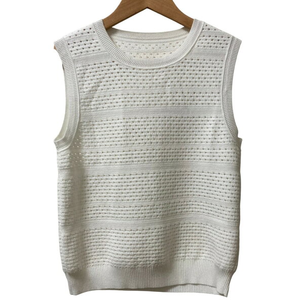 【中古】美品 FOXEY フォクシー ノースリーブニットトップス 42089 サイズ38 ホワイト レディース Luxs ブランド古着のリュクス