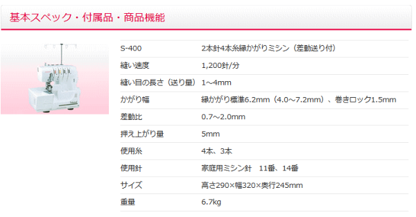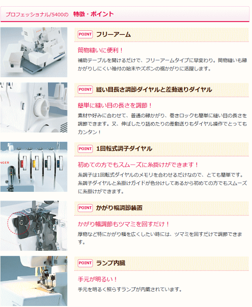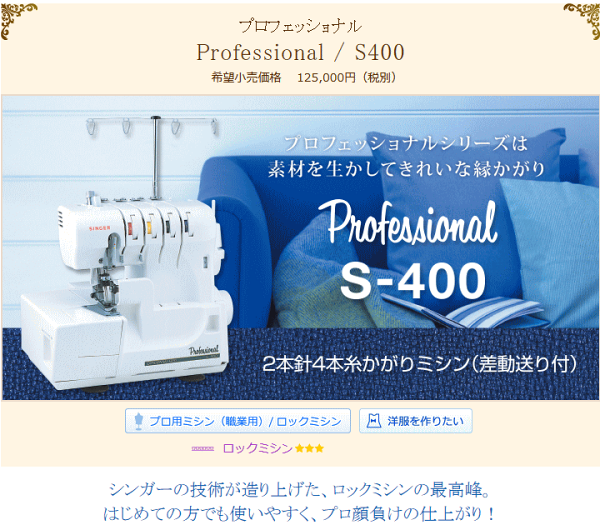 \大感謝祭SALE!1,700円OFFクーポン有/【ロックミシンランキング1位獲得】シンガー S400 ロックミシン プロフェッショナルS-400 2本針4本糸ロックミシン【5年保証】【ミシン本体】ニットソーイング