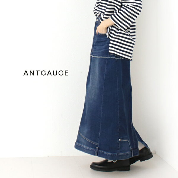 [50%OFF] アントゲージ Antgauge 10.5ozストレッチデニム Aラインアプサイダウンスカート GE496 ボトムス ロング丈 レディース 2025春夏 [返品・交換不可]