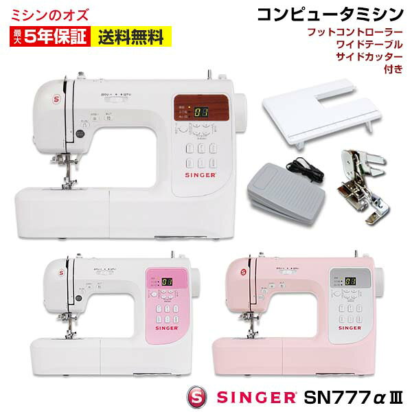 【P15倍!26日12:59まで!】シンガー ミシン 文字縫い 本体 初心者 コンピューターミシン SN777α3(ホワイト/ピンク/ホワイトピンク) WT&FC&サイドカッター付!