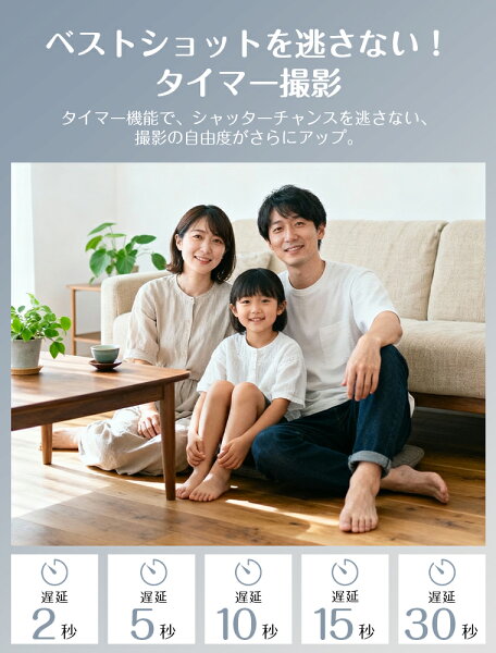 デジカメのタイマー撮影機能搭載で、2秒、5秒、10秒、15秒、30秒のタイマーが設定可能、集合写真でも簡単に撮れる。家族みんなで撮るときに大活躍してくれる!モニターにカウントダウン表示もある。LEDライトがついて、夜やくらい場所でも素晴らしい写真がとれます。