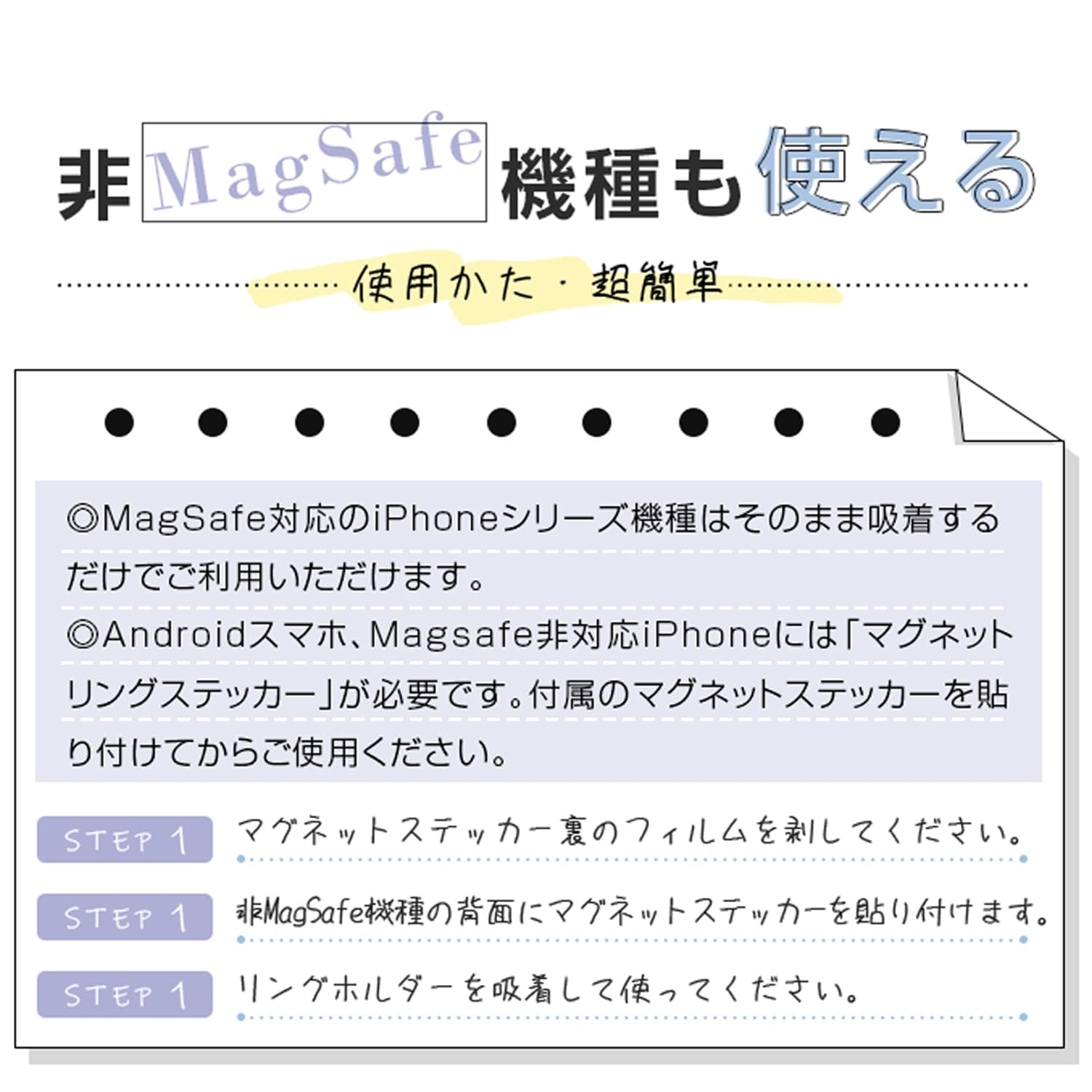 | 同梱商品: | マグネットホルダー本体*1、マグネットステッカー*1 |