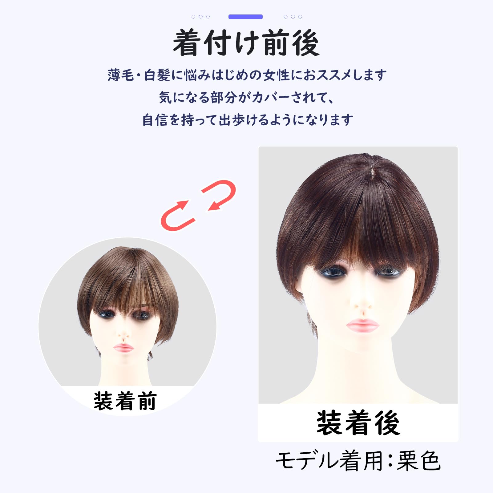| 行事: | 人との接触 ママ友 職場 同窓会 人目を気にせず 自信を持って, 普段使い 毎日 お出かけ 通勤 近所へのお買い物, 自宅 手入れ 自宅で簡単 シャンプーOK お手入れ楽 急なお誘い, 髪型 イベント 髪のセットが苦手 ヘアアレンジ 旅行 結婚式 記念撮影 |
