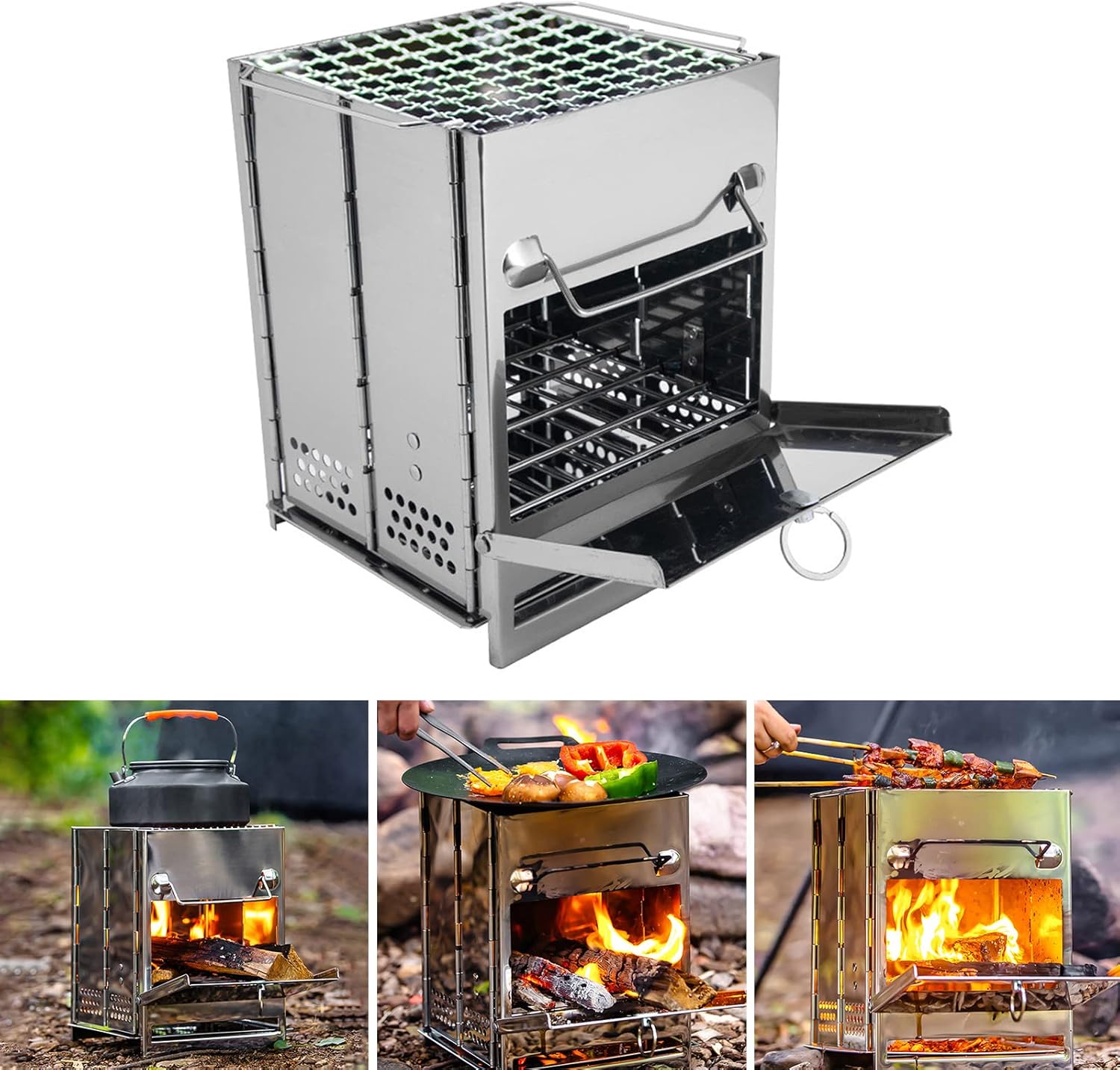 高効率燃焼:360度のエアフローと独自の折りたたみデザインにより、適切な燃焼を実現します。これにより、木材やその他の天然素材がより完全に燃焼し、生成物が少なくなります。
