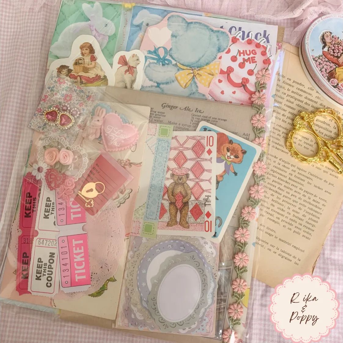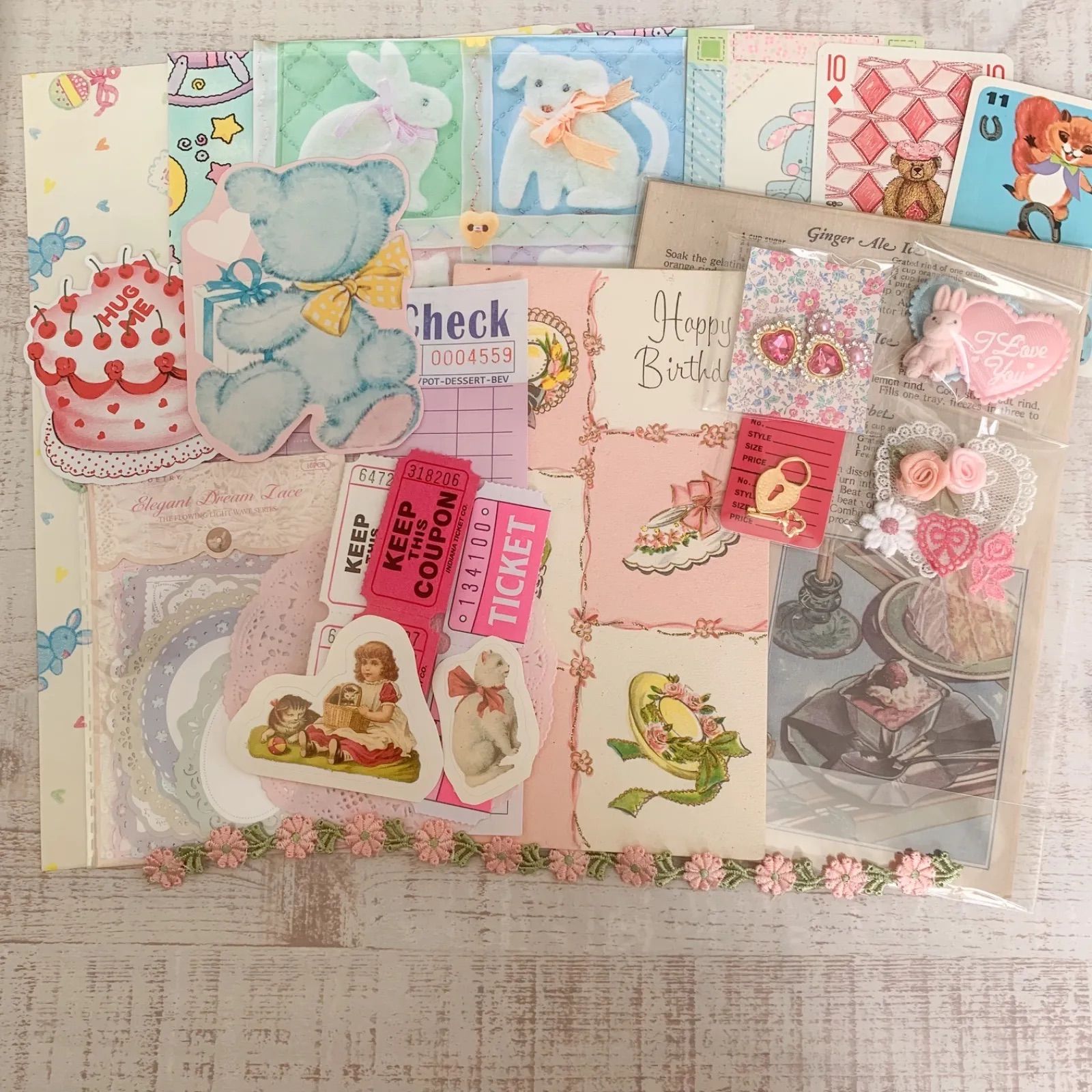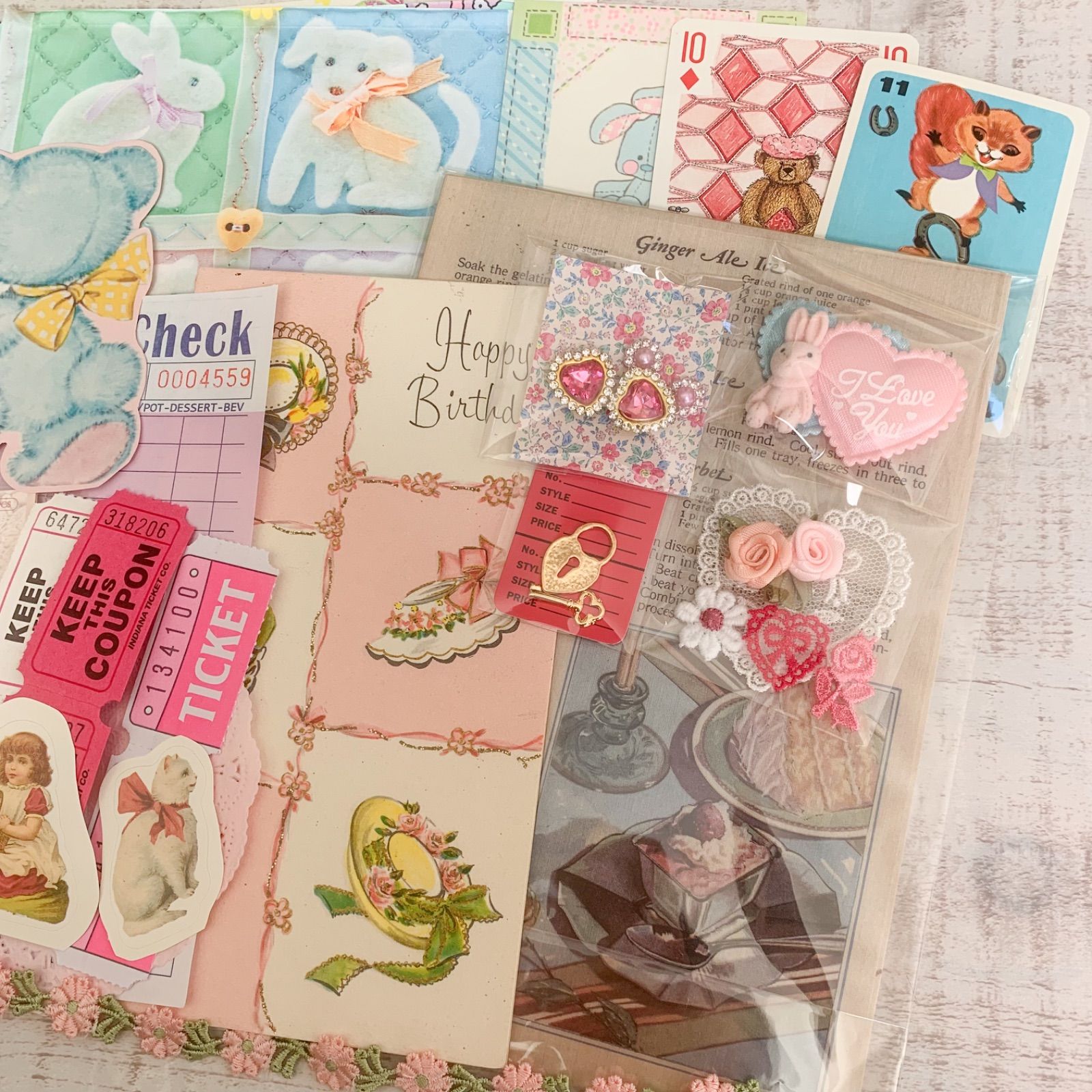 #紙もの #コラージュ素材 #おすそ分けファイル #ジャンクジャーナル #ヴィンテージトランプ #くま #ピンクコラージュ #RikaandPoppy