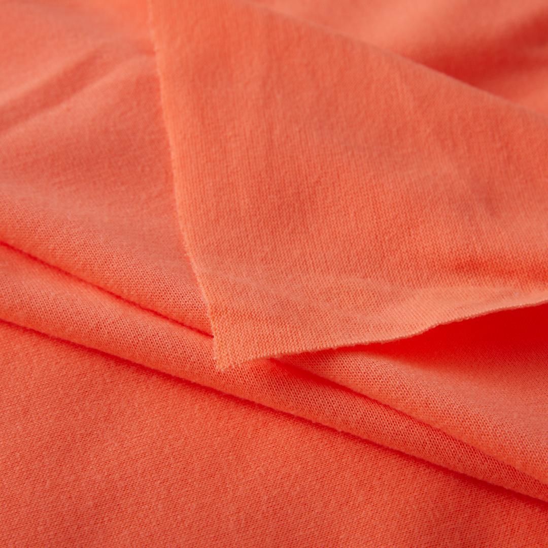 "こちらの生地は、吸水速乾性に優れたポリエステルスパン素材を使用した天竺です。綿のような見た目と風合いが特徴であり、ソフト感があるため着心地が良く、快適に過ごせます。