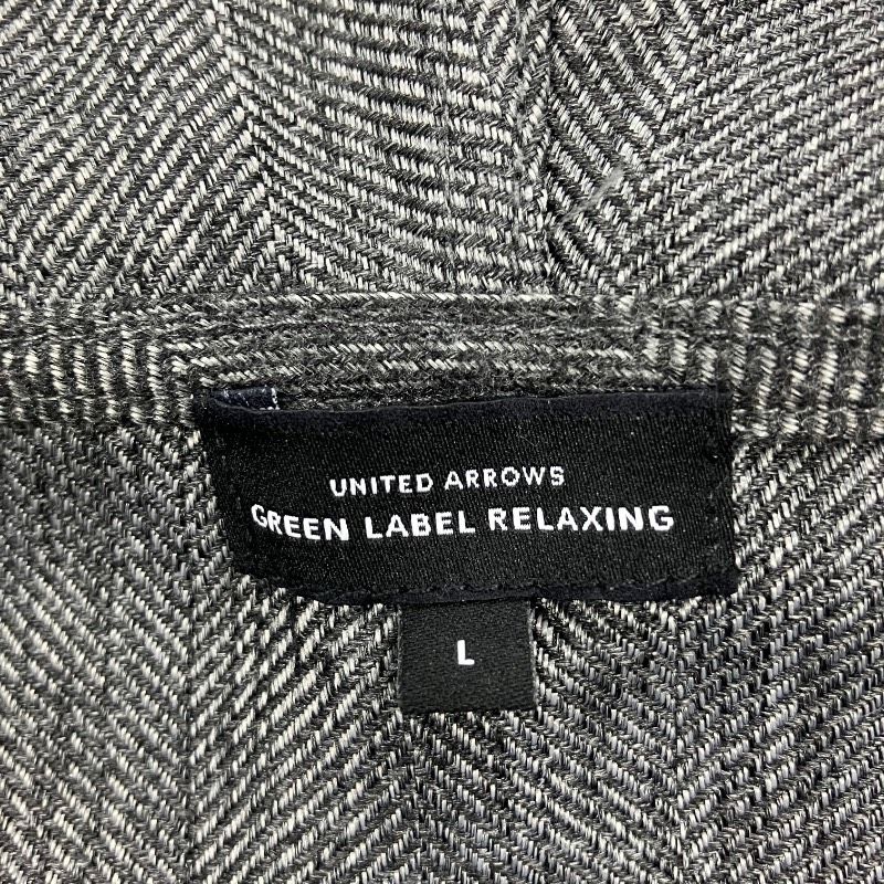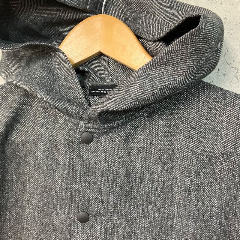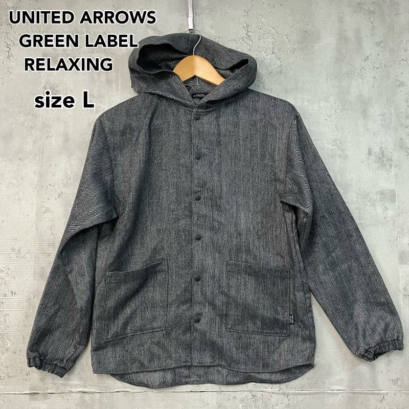 【UNITED ARROWS GLR】へリンボーン柄フーデッドジャケット L 灰/黒 秋冬 スナップボタン アノラックパーカー風 ★ ◇■