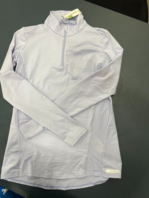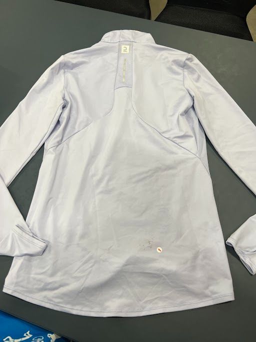 訳あり デカトロン KALENJI(カレンジ) ランニング 長袖シャツ DRY+ ZIP レディース ライトブルー XSサイズ タグ破れ 汚れあり