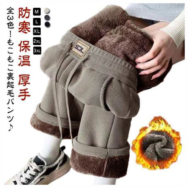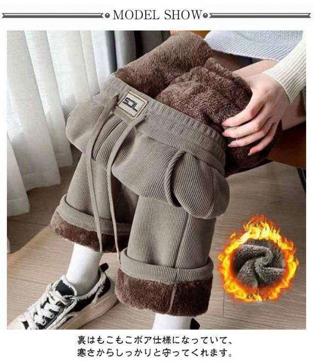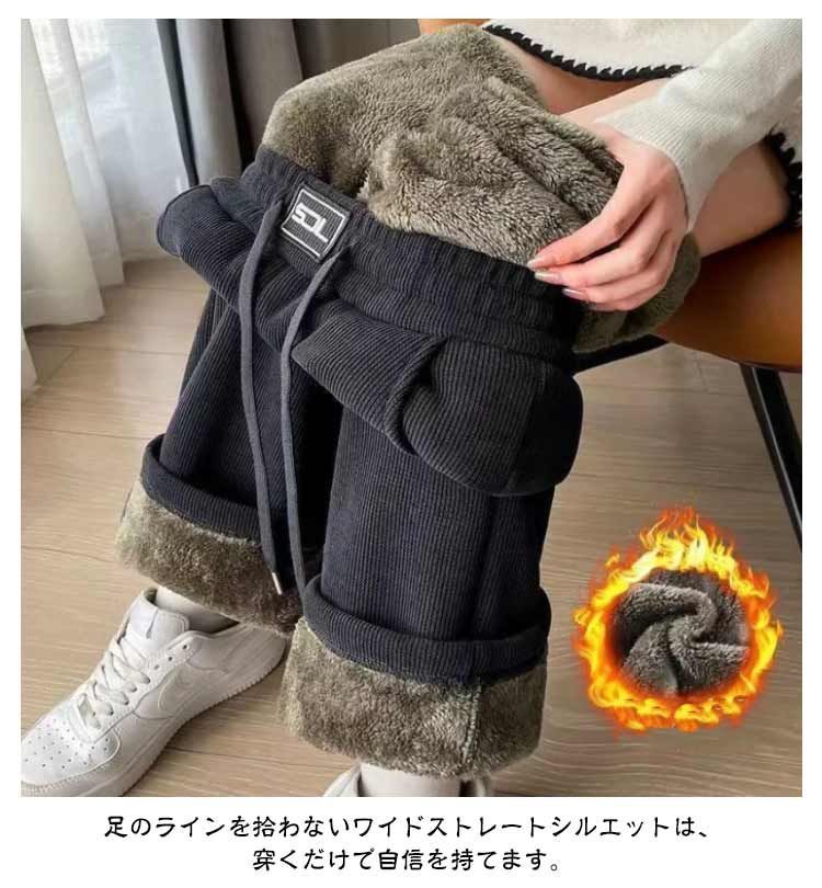 裏起毛 ワイドパンツ レディース 裏ボア もこもこ あったかパンツ ボトムス 体型カバー ロングパンツ 長ズボン ウエストゴム 秋 冬 コーデユロイ 防寒 保温 厚手 カジュアル 通勤 オフィス#lulum497