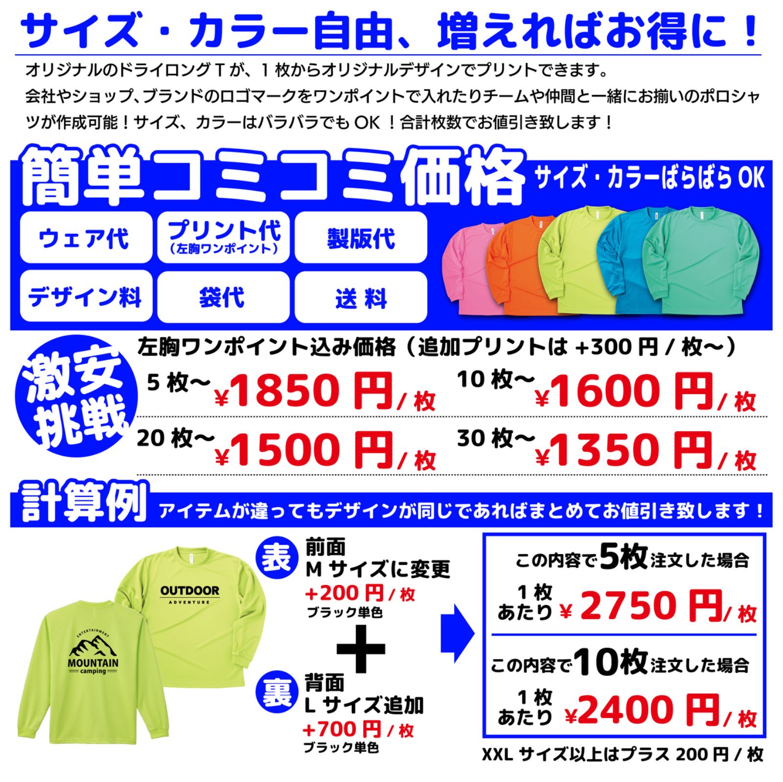 ■基本料金(左胸ワンポイント含む)
