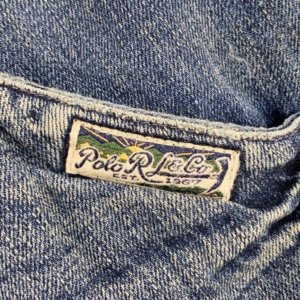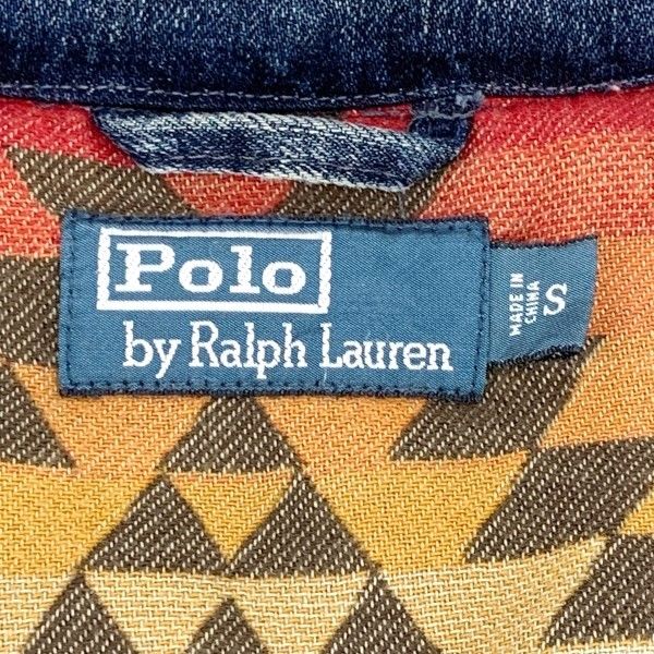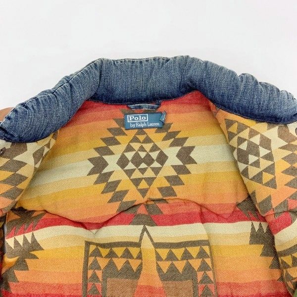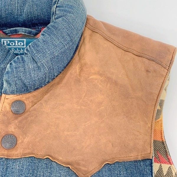 POLO RalphLauren ポロラルフローレン ネイティブ柄 レザー切替 デニムベスト メンズ Sサイズ インディゴ アウター DM17282■