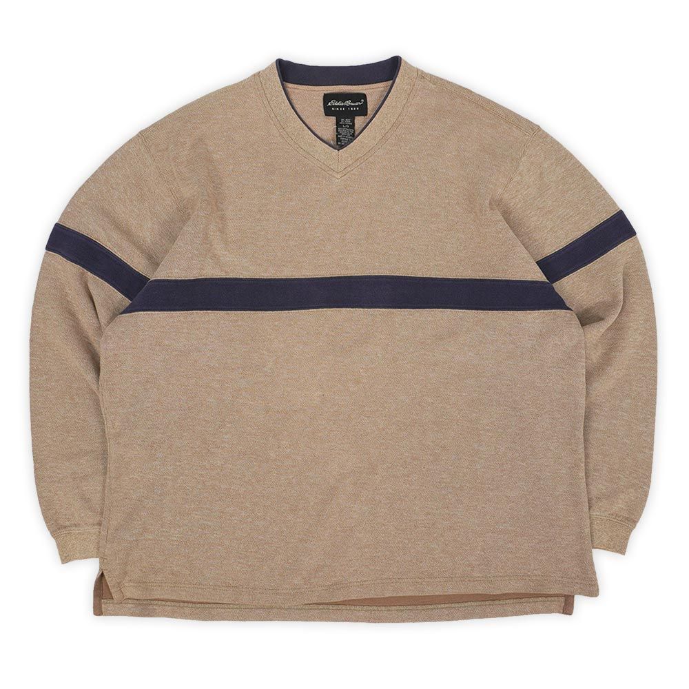 エディーバウアー Eddie Bauer 00s 2000年代 Vネック コットンニット 黒タグ USA ヴィンテージ アメリカ 古着 メンズ ニット セーター ベージュ ネイビー L【中古】