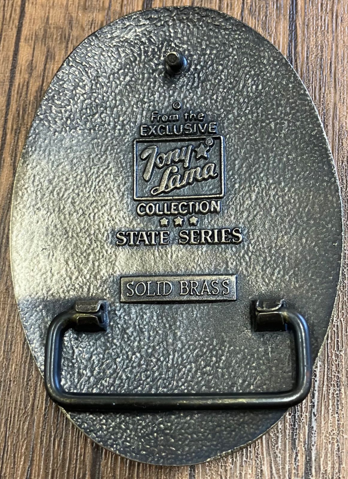 T206 Tony Lama State Series State of Illinois Belt Buckle Solid Brass