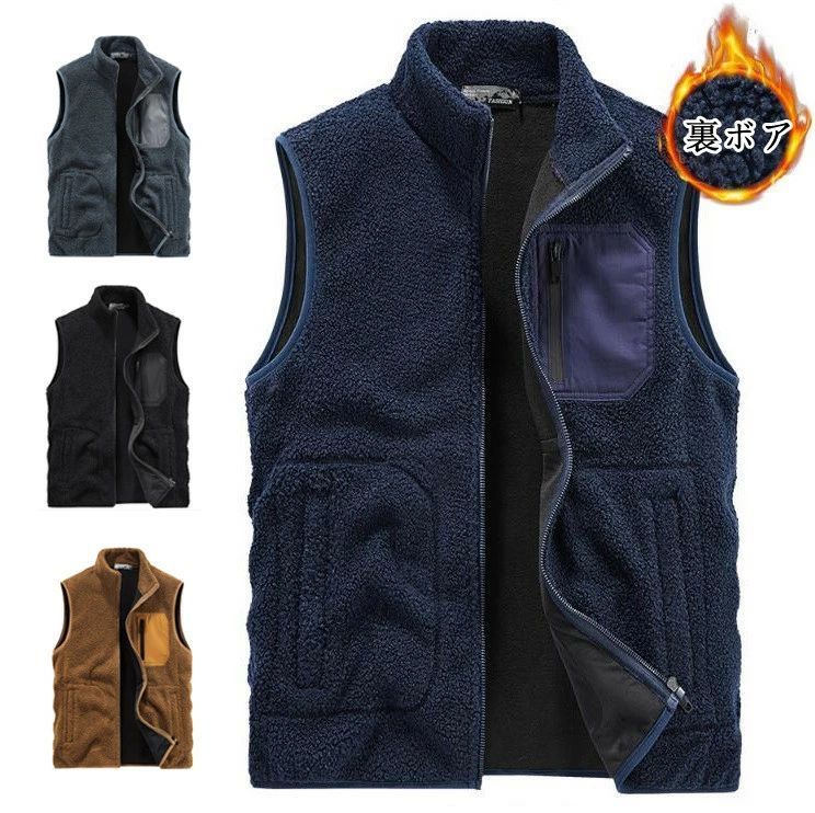 送料無料 ベスト メンズ 裏ボア フリースベスト ジレベスト チョッキ インナーベスト ジップアップ ショート丈 トップス おしゃれ カジュア