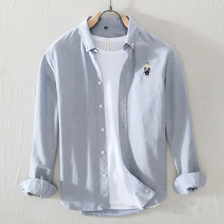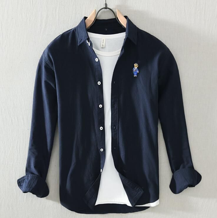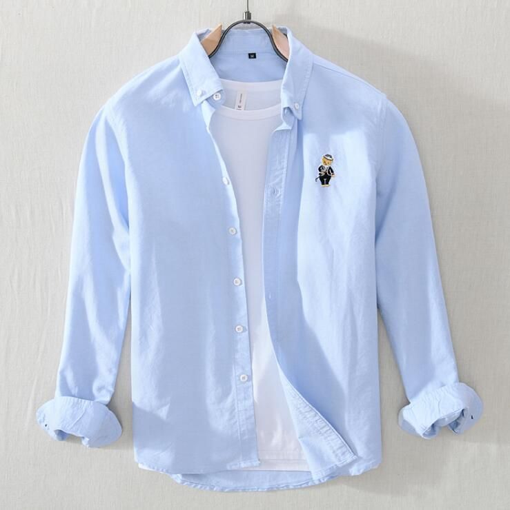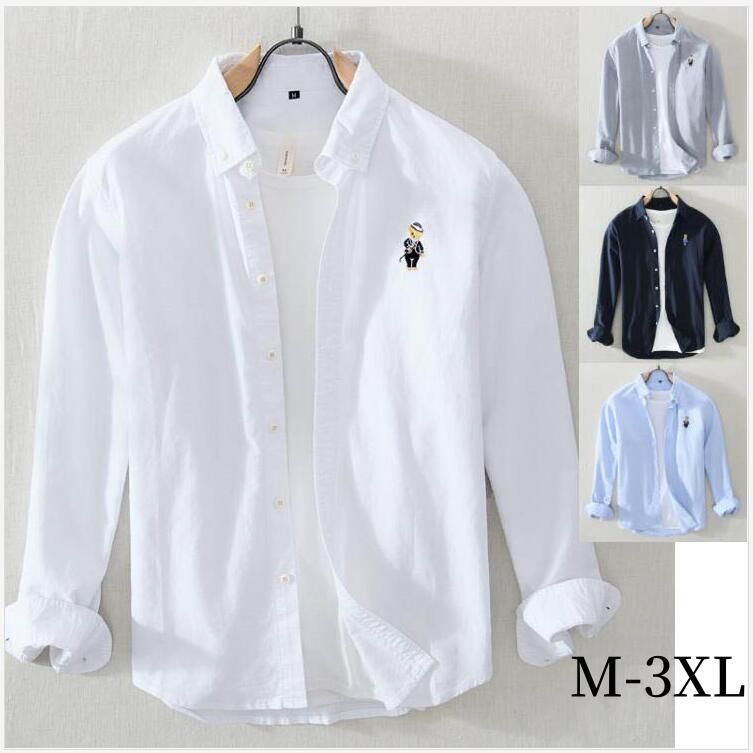 M-3XL シャツ 長袖 メンズ カジュアルシャツ 長袖シャツ 刺繍 無地 立ち襟 綿 春服 通学 大人 学生 カジュアル おしゃれ メンズかっこいい