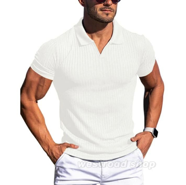 折り襟 Vネック トレーニングウェア メンズ 半袖Tシャツ ニットトップス 筋トレ 吸汗 速乾 フィットネス スポーツ ランニングウェア ポロシ
